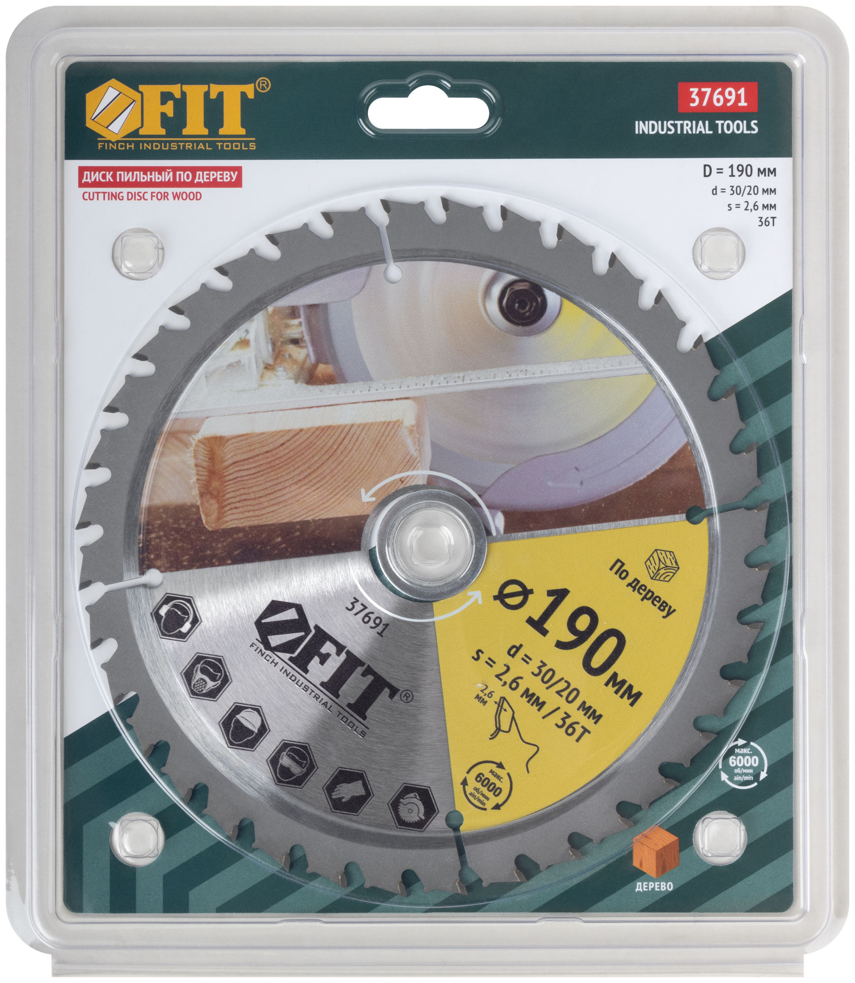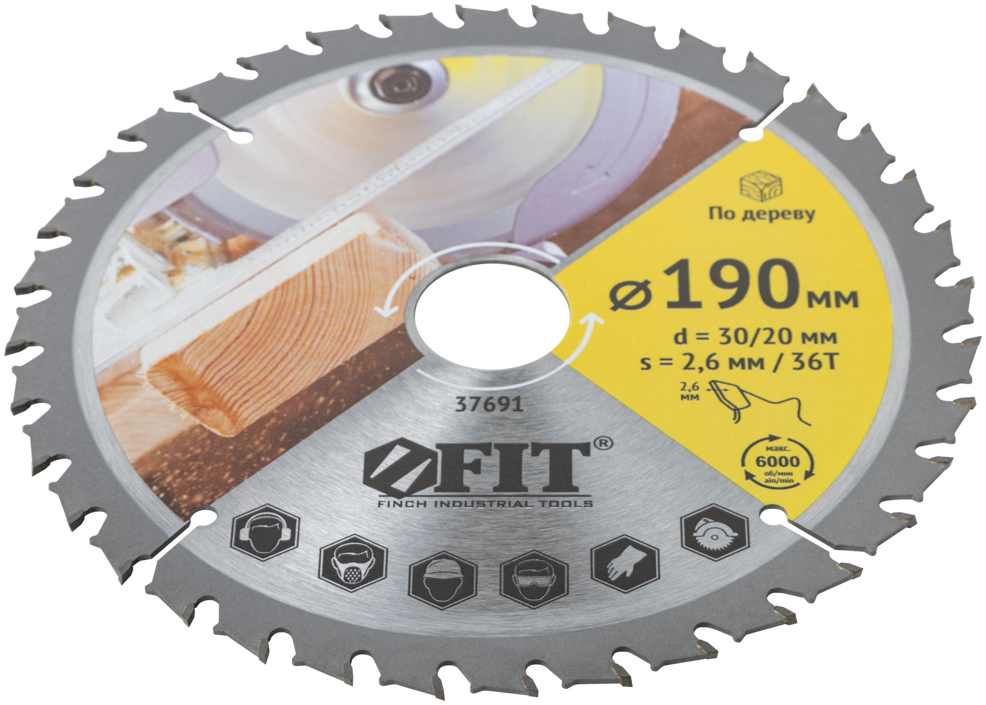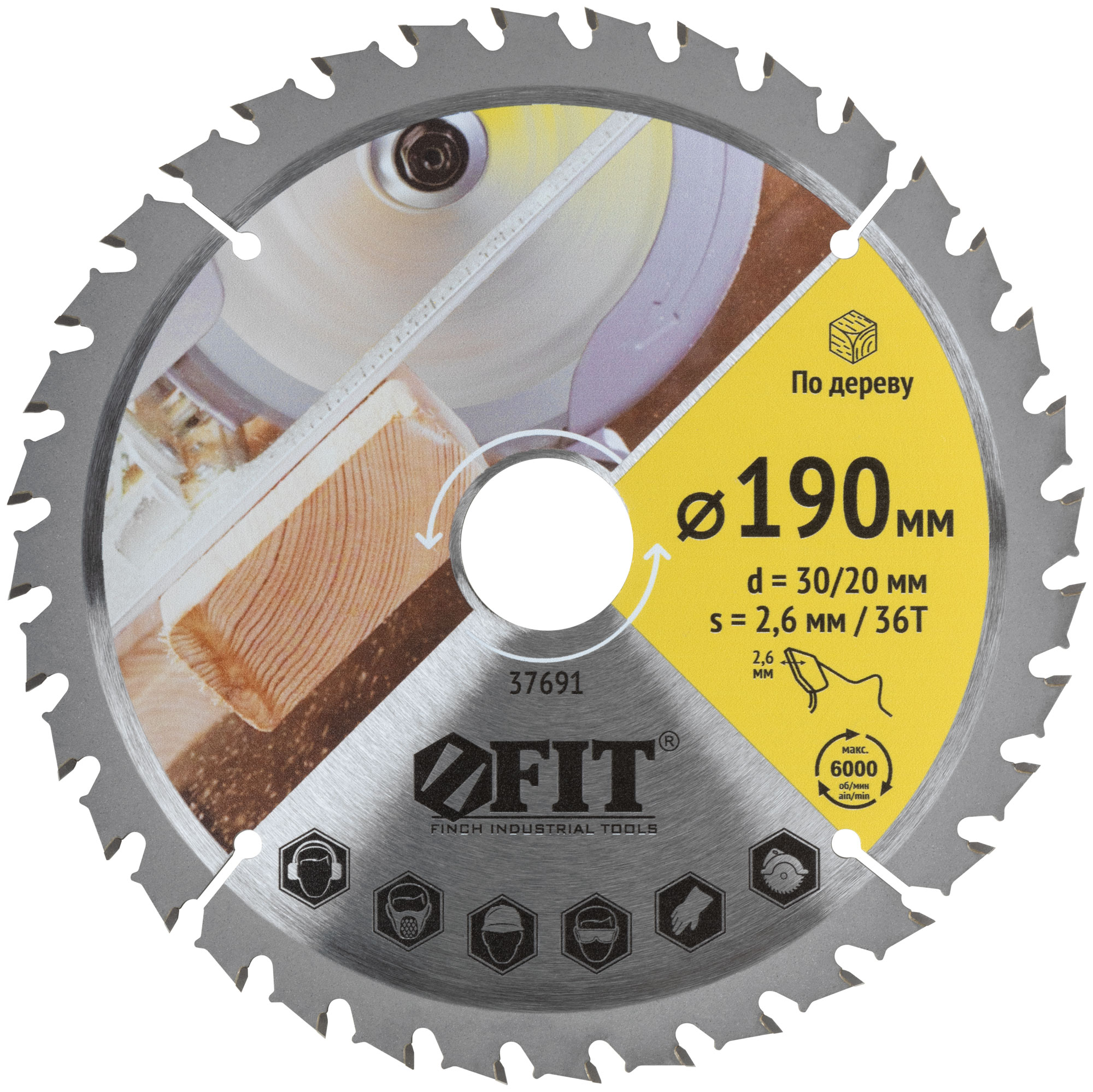 Диск пильный для циркулярных пил по дереву, спец. форма зуба 190 х 30/20 х 36Т