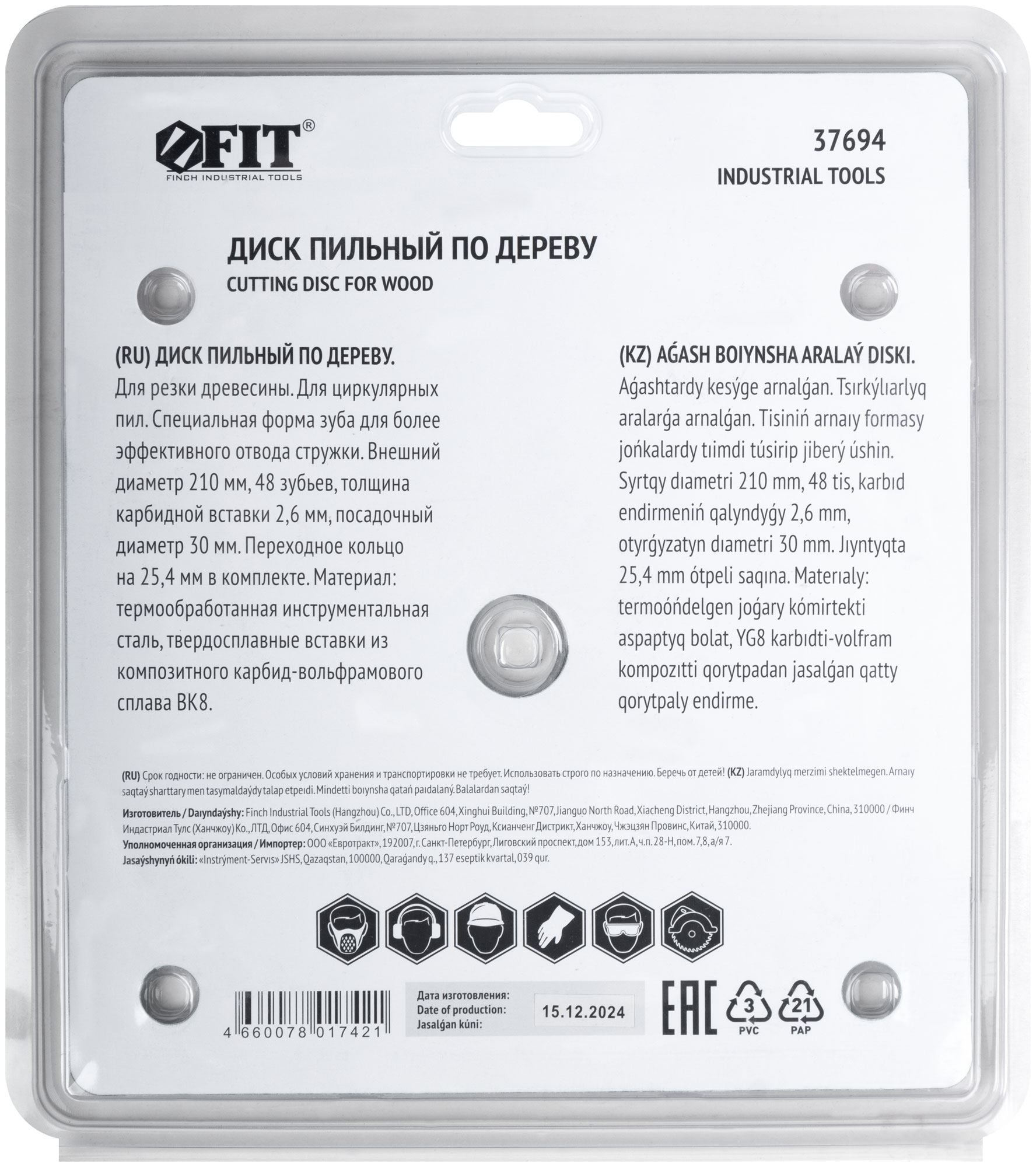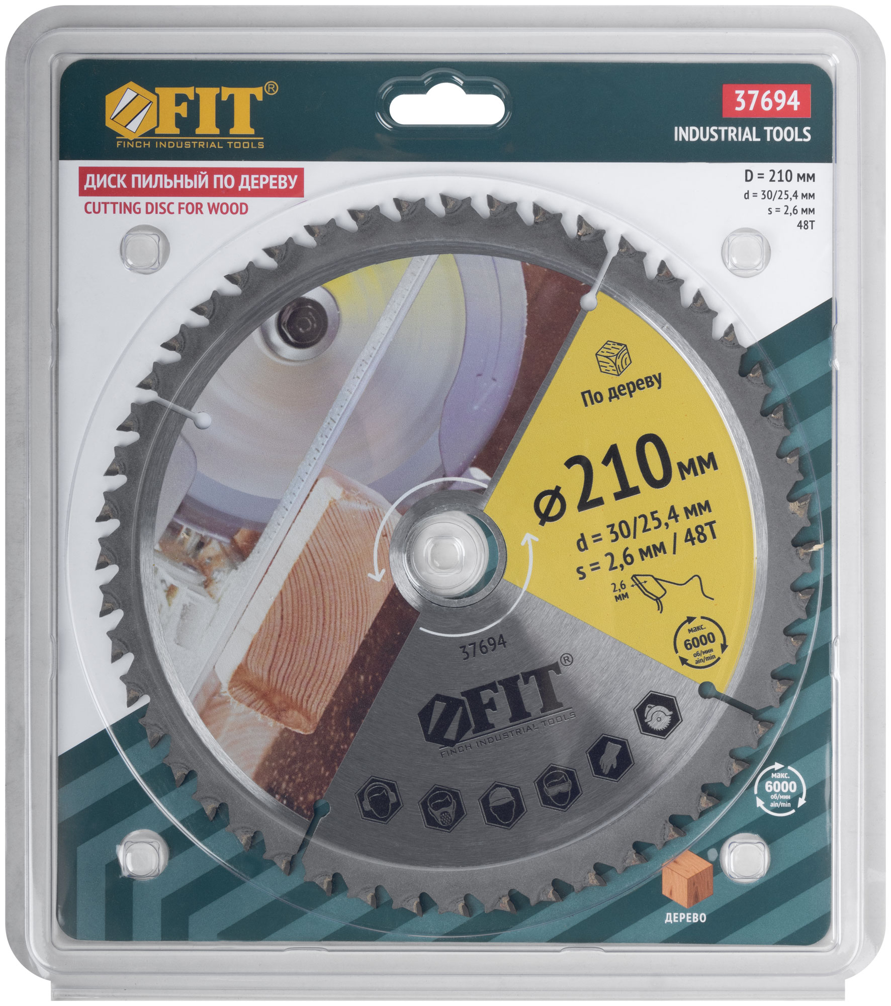Диск пильный для циркулярных пил по дереву, спец. форма зуба 210 х 30/25,4 х 48Т