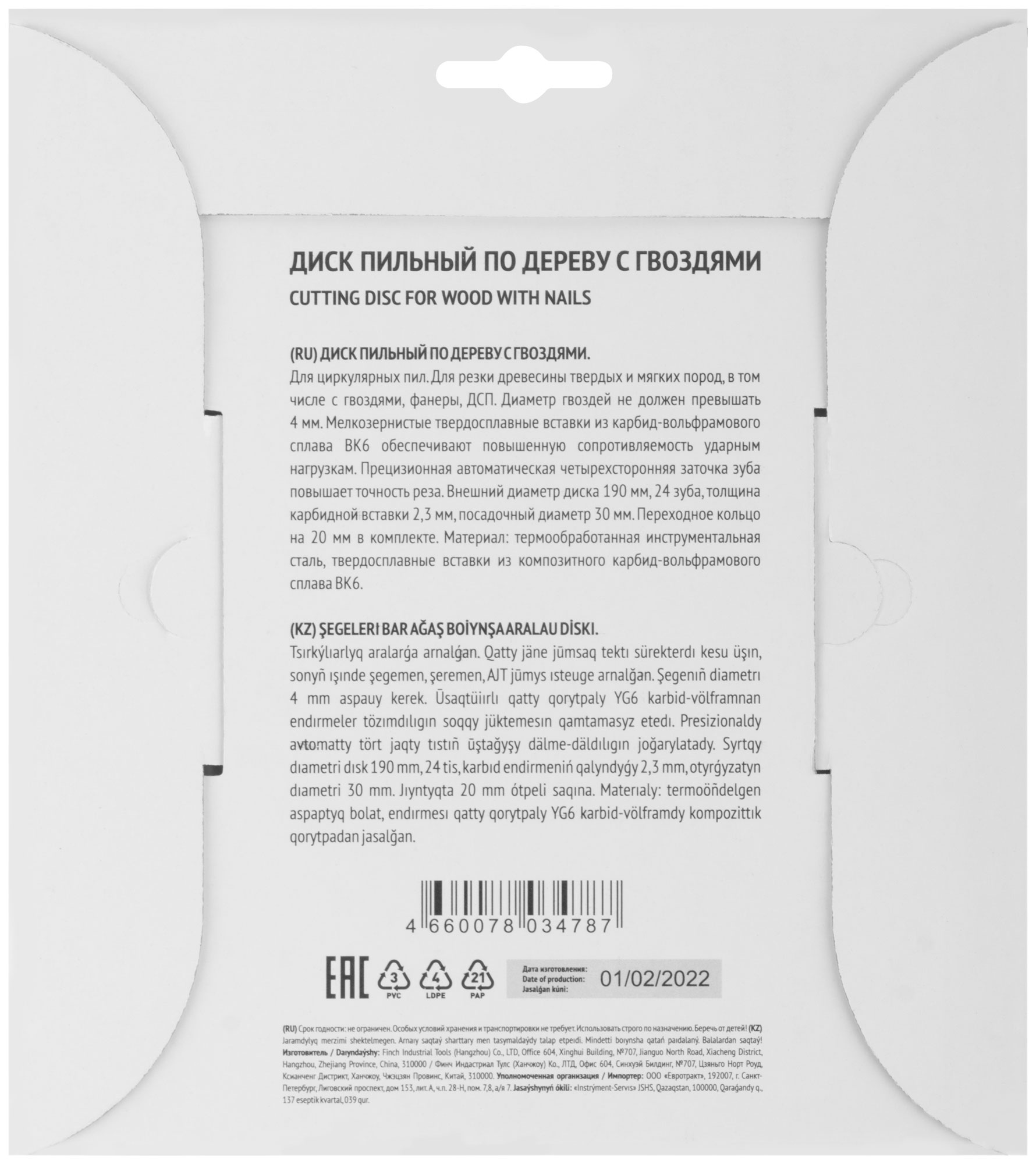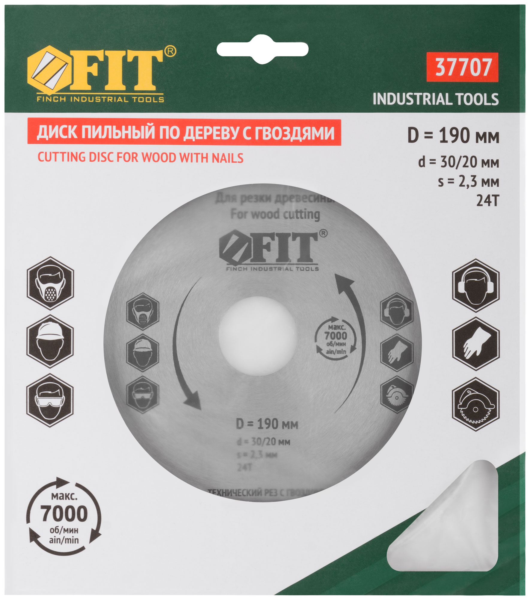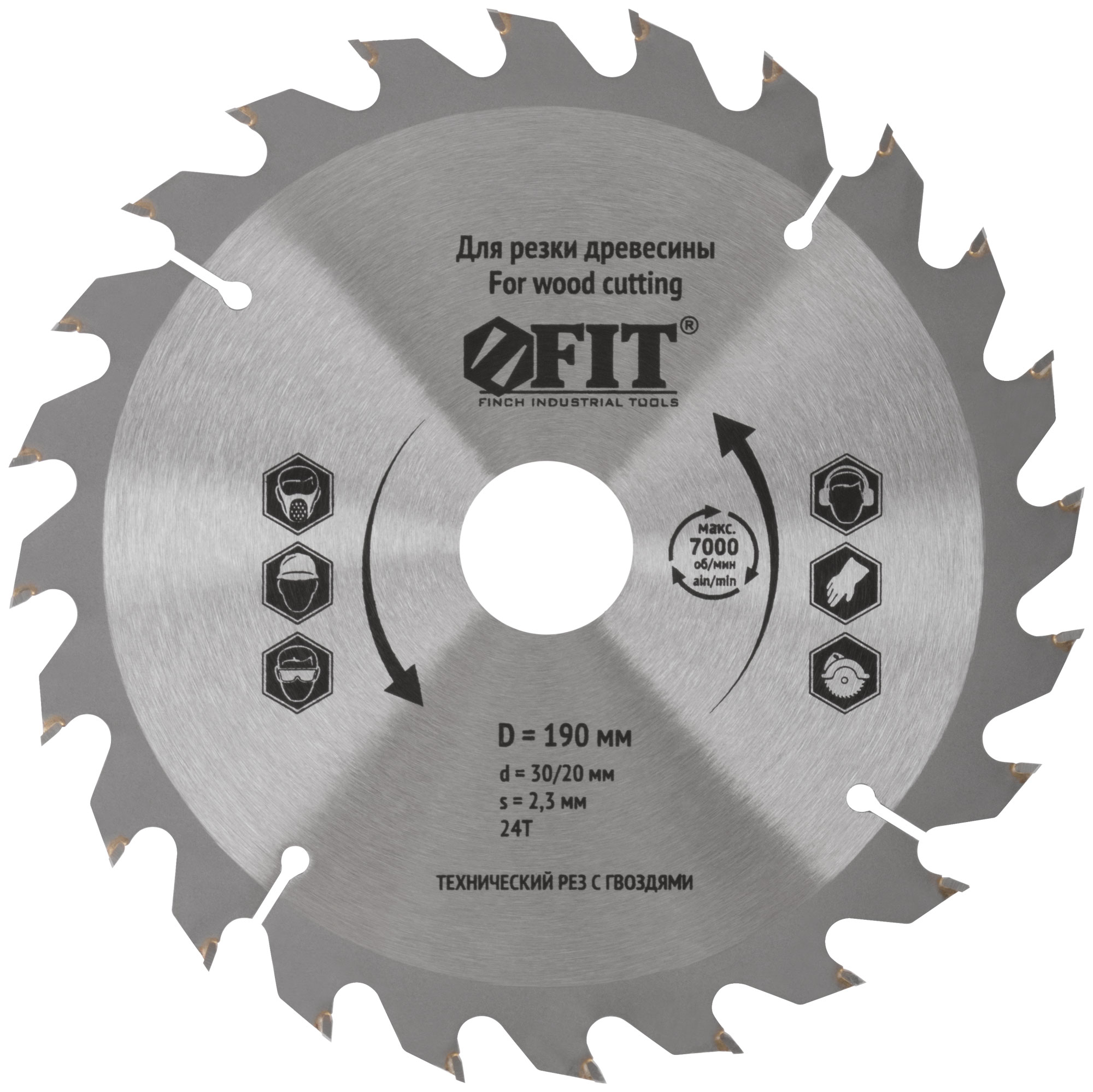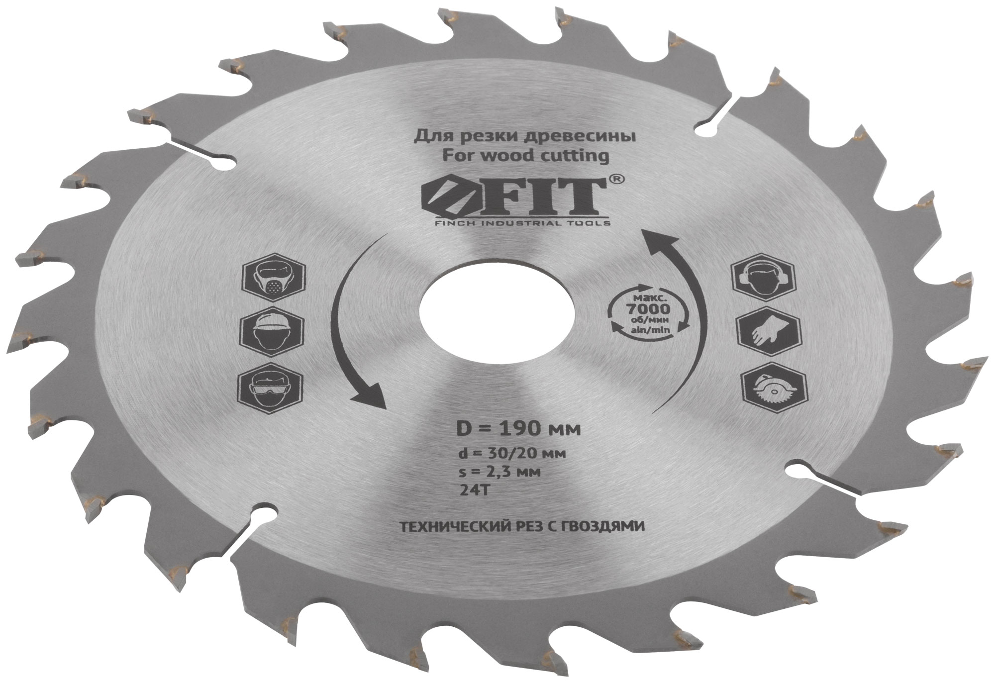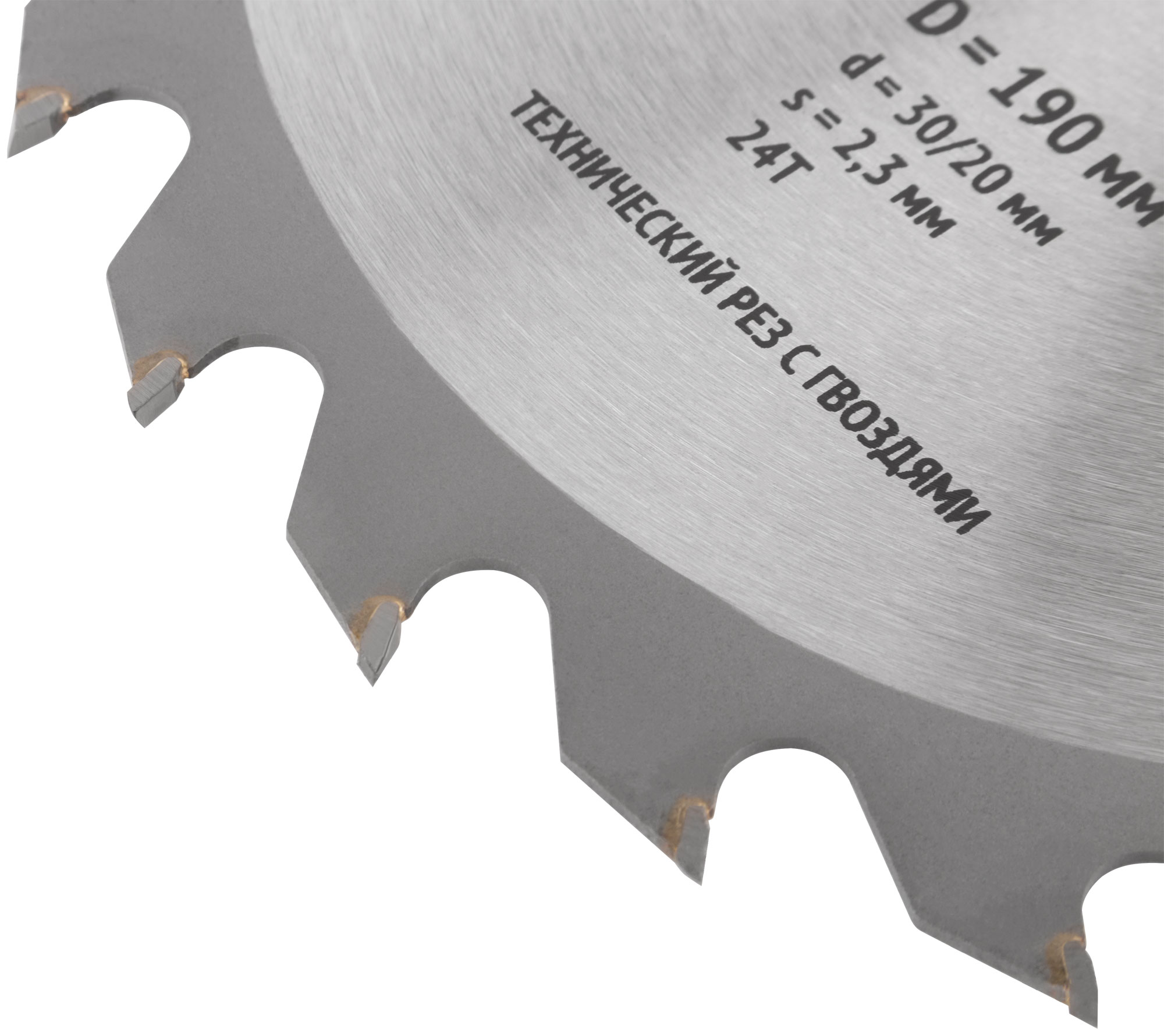 Диск пильный для циркулярных пил по дереву, технический рез с гвоздями 190 х 30/20 х 24T