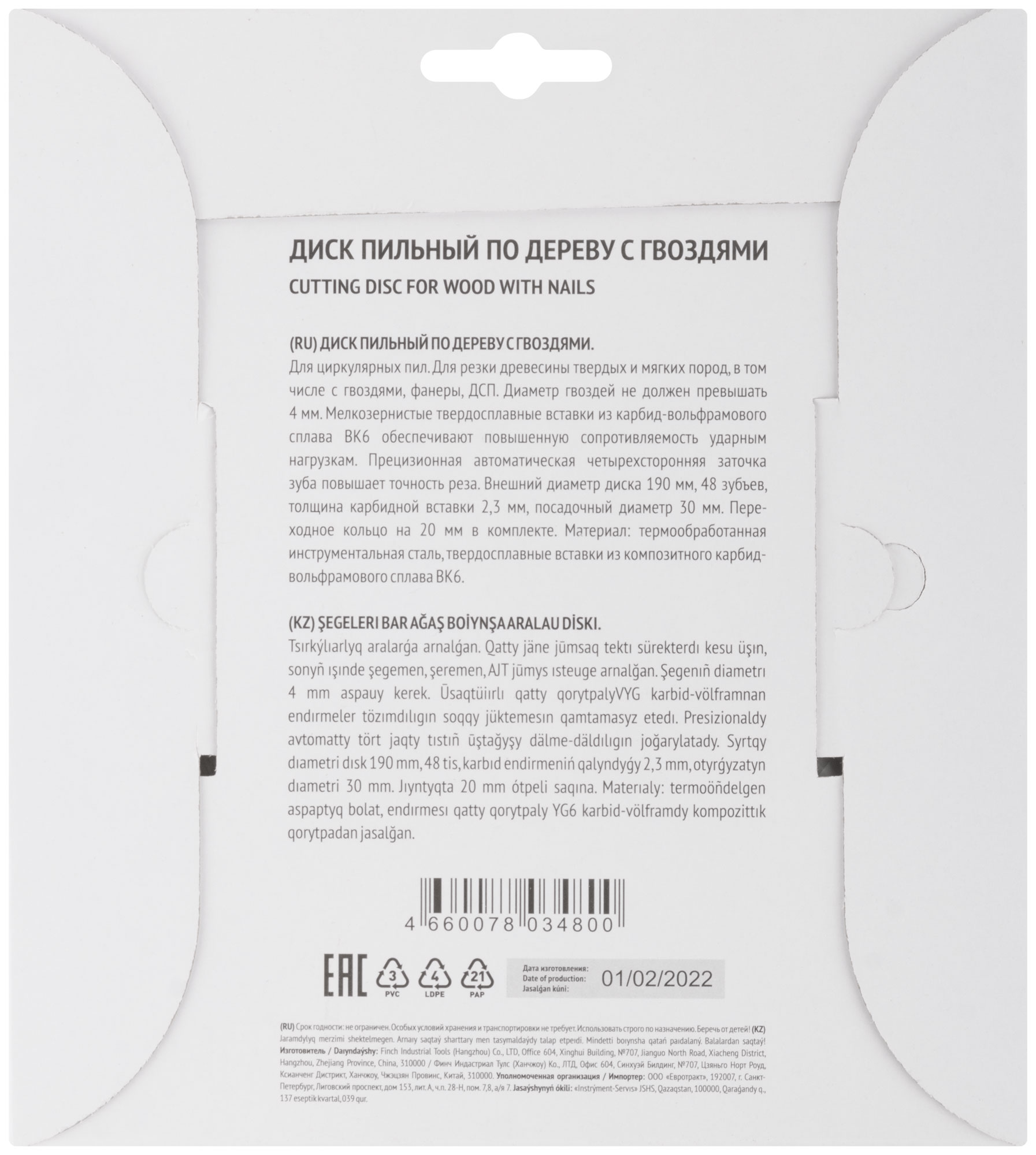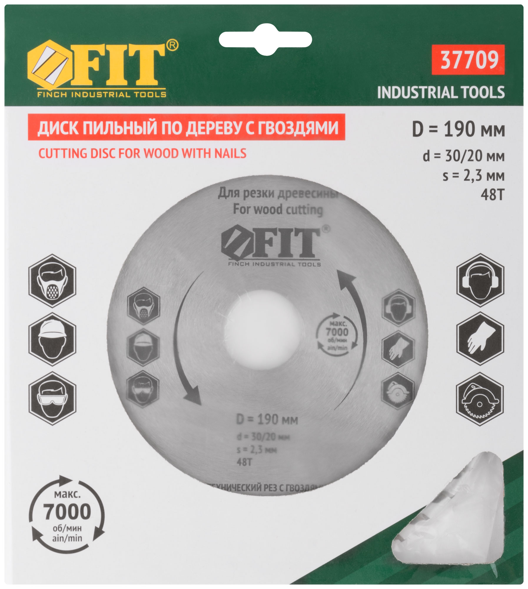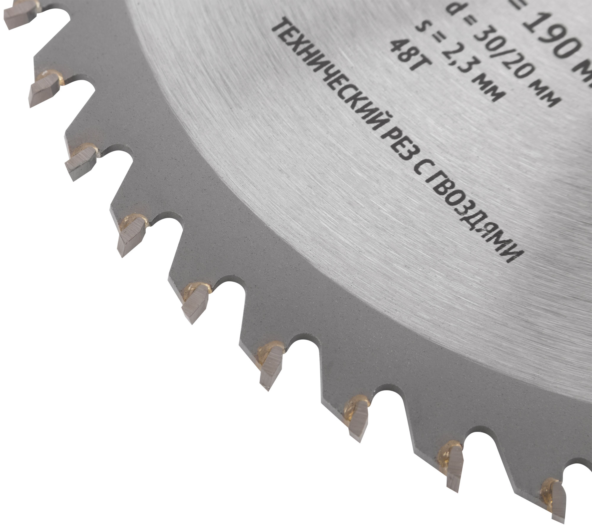 Диск пильный для циркулярных пил по дереву, технический рез с гвоздями 190 х 30/20 х 48T