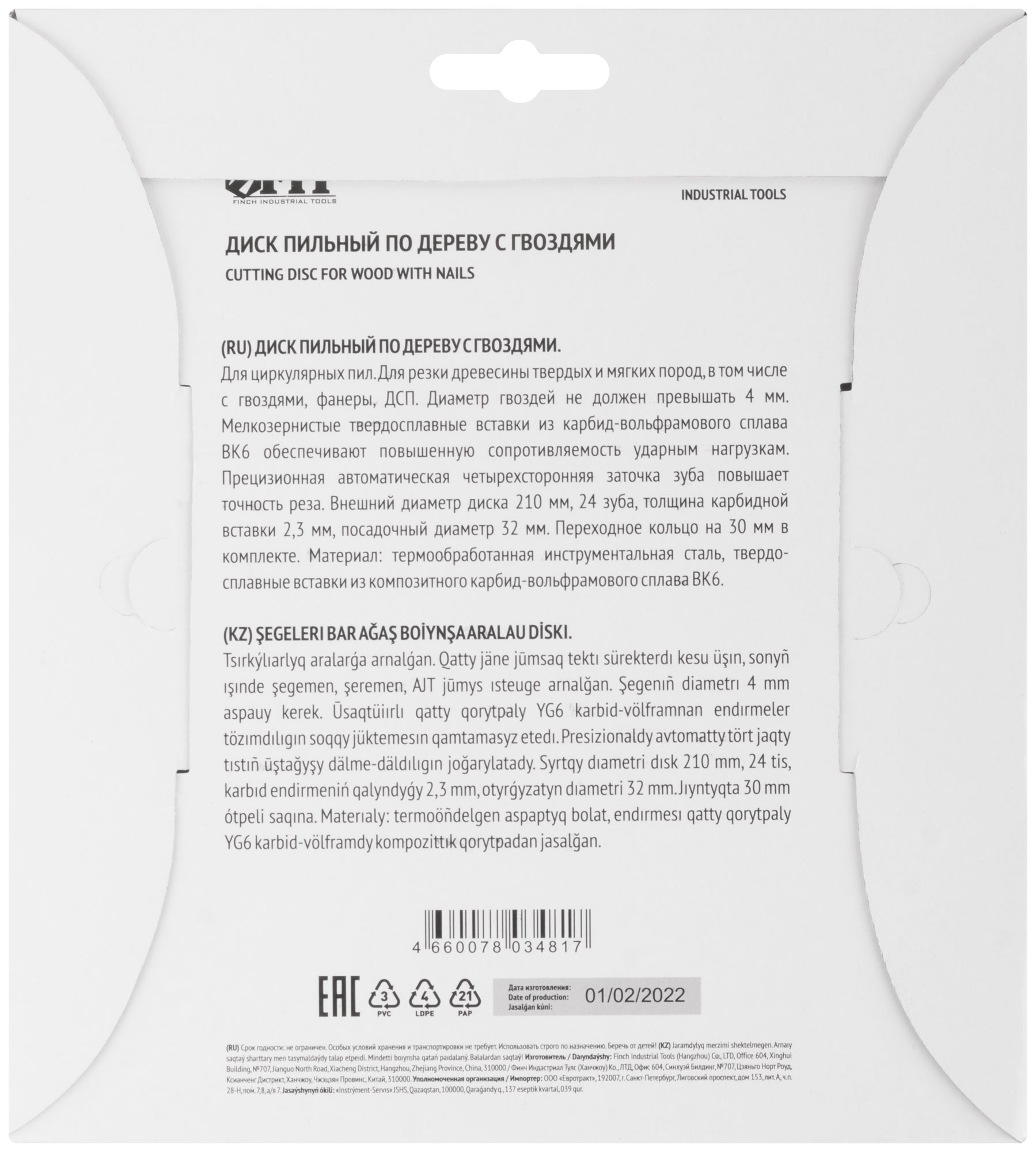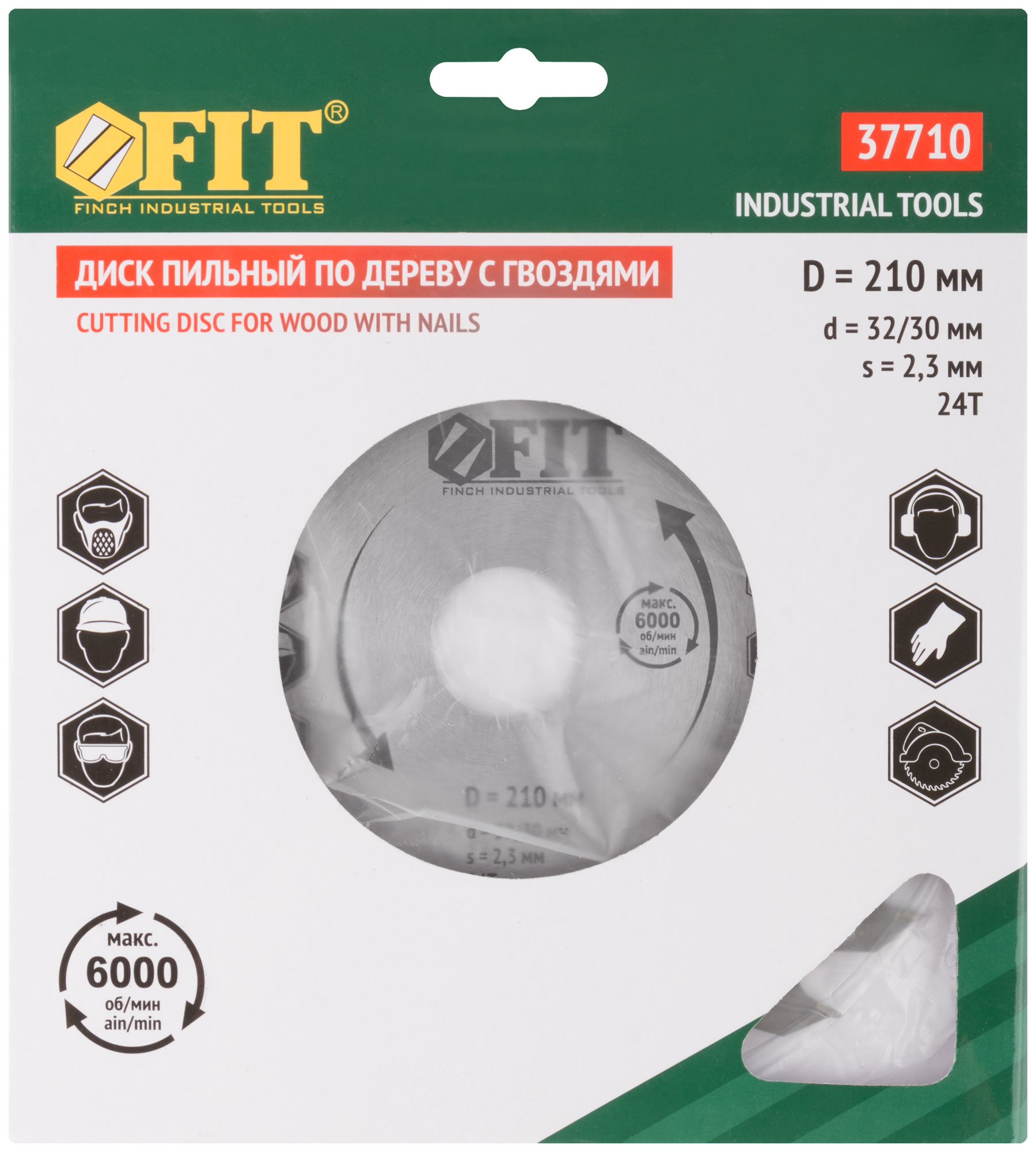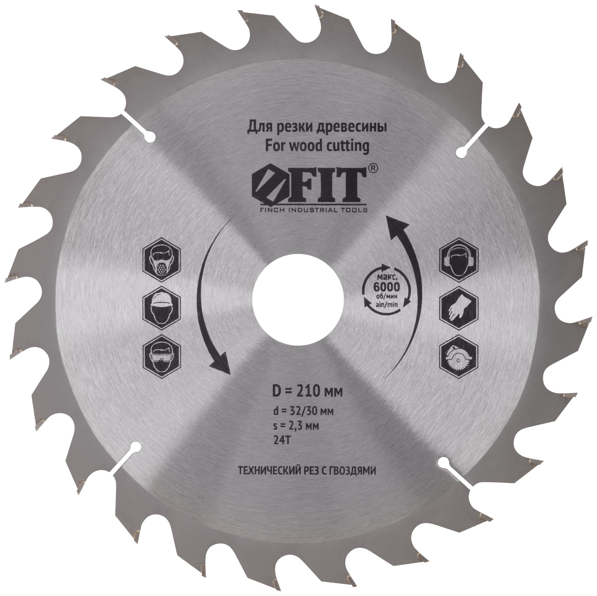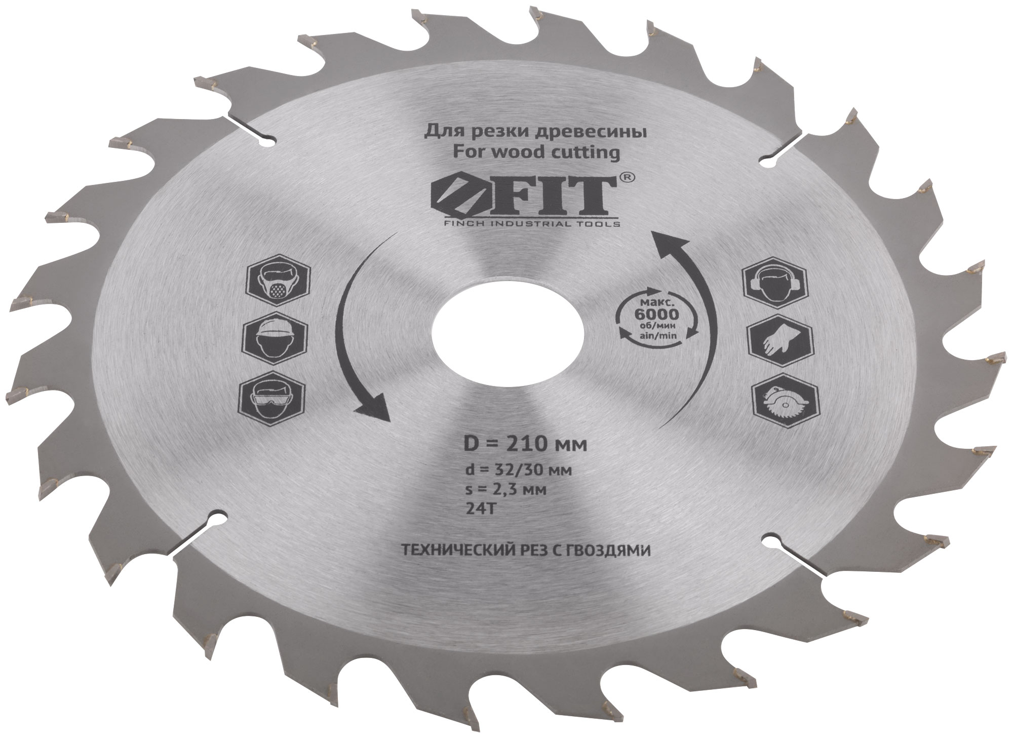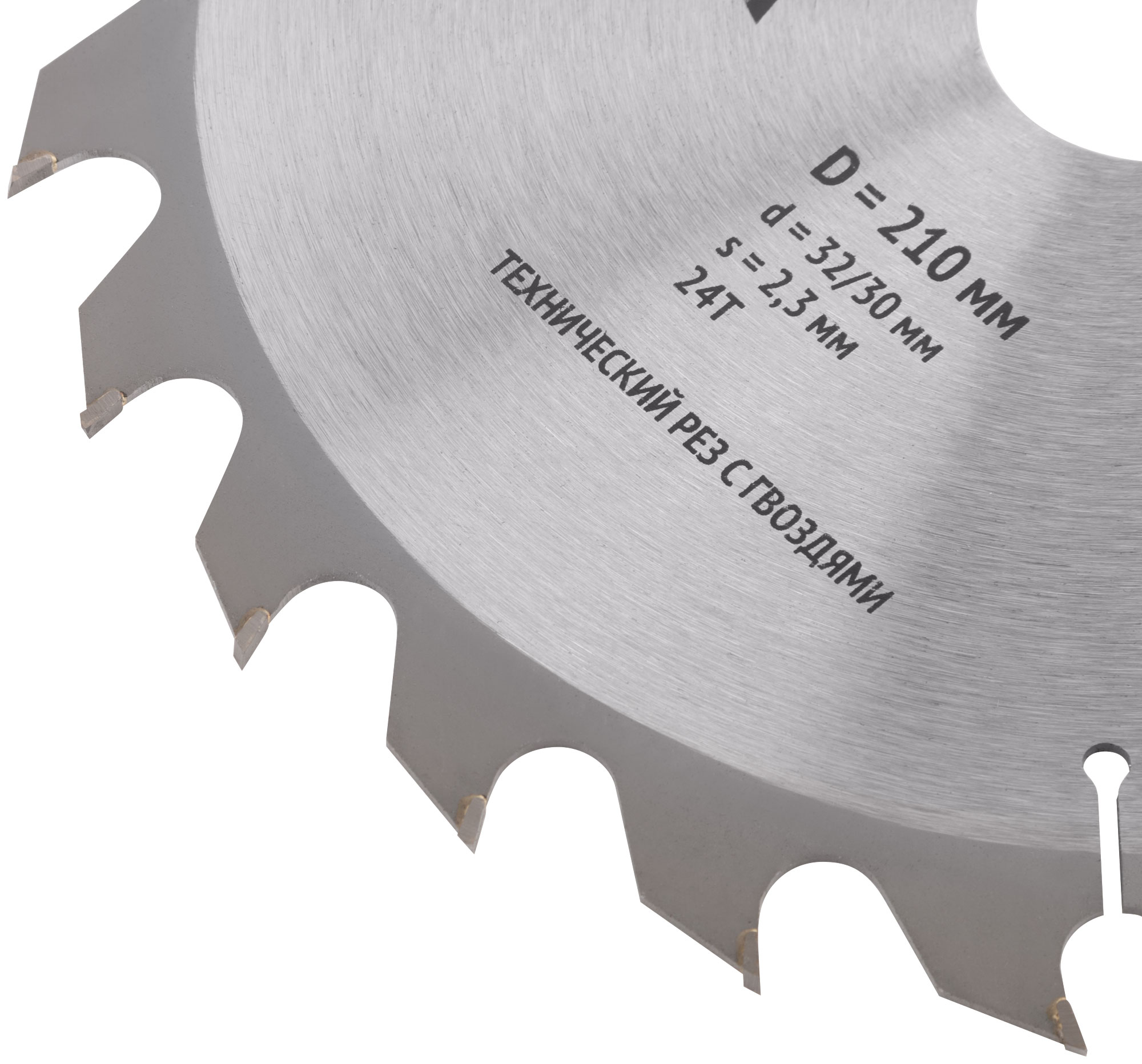 Диск пильный для циркулярных пил по дереву, технический рез с гвоздями 210 х 32/30 х 24T