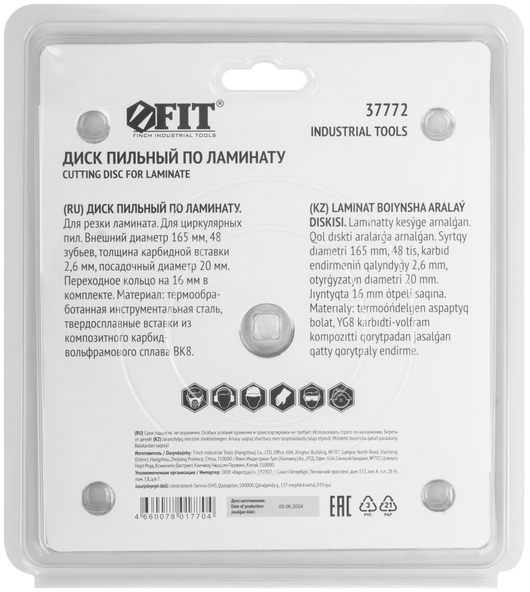 Диск пильный для циркулярных пил по ламинату 165 х 20/16 х 48T