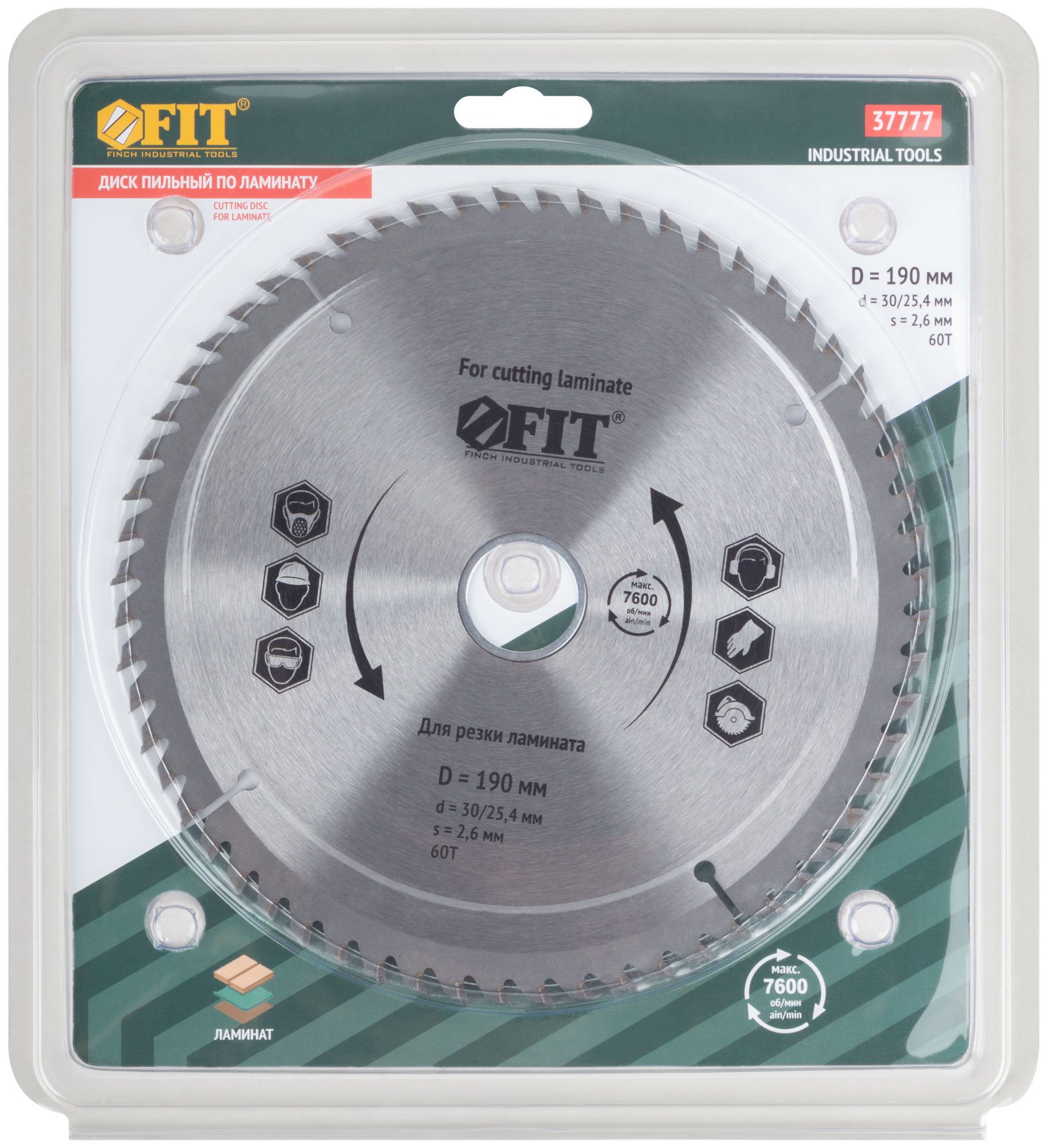 Диск пильный для циркулярных пил по ламинату 190 х 30/25,4 х 60T