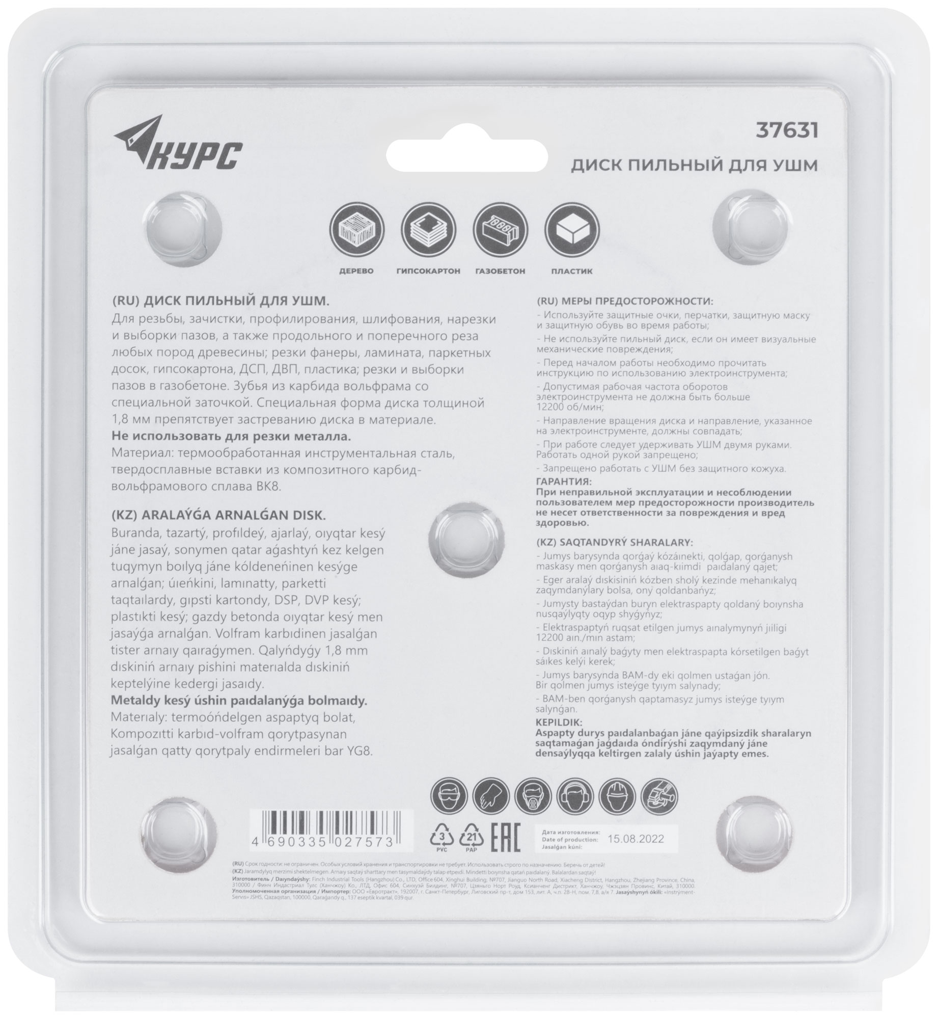 По дереву, газобетону, гипсокартону, пластмассе. Для углошлифовальных машин. Посадочный диаметр 22,2 мм. 3 зуба с карбидными вставками. Специальная форма диска препятствует застреванию в материале. Материал: инструментальная сталь, зубья с карбидными вставками. Упаковка: блистер.