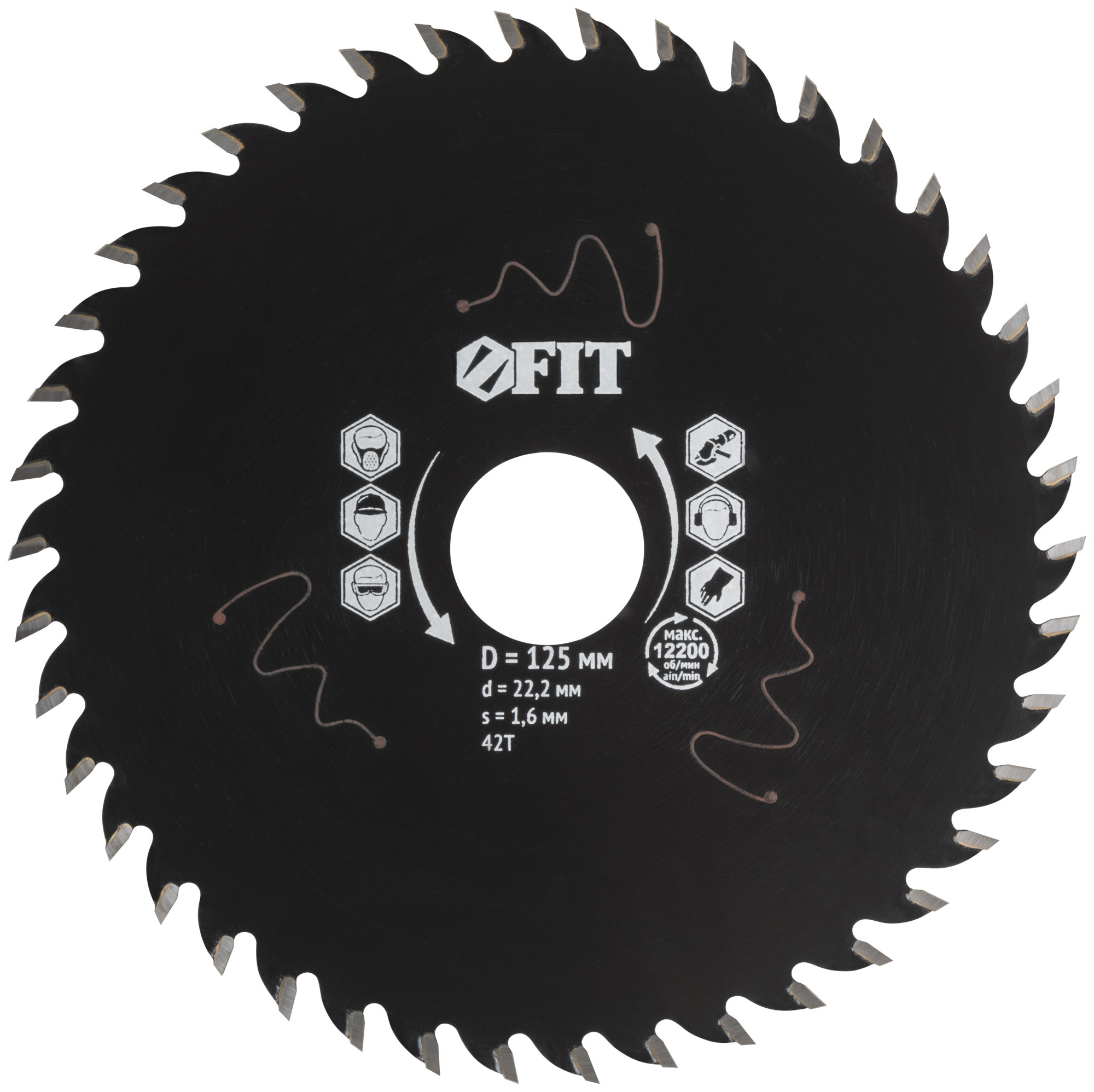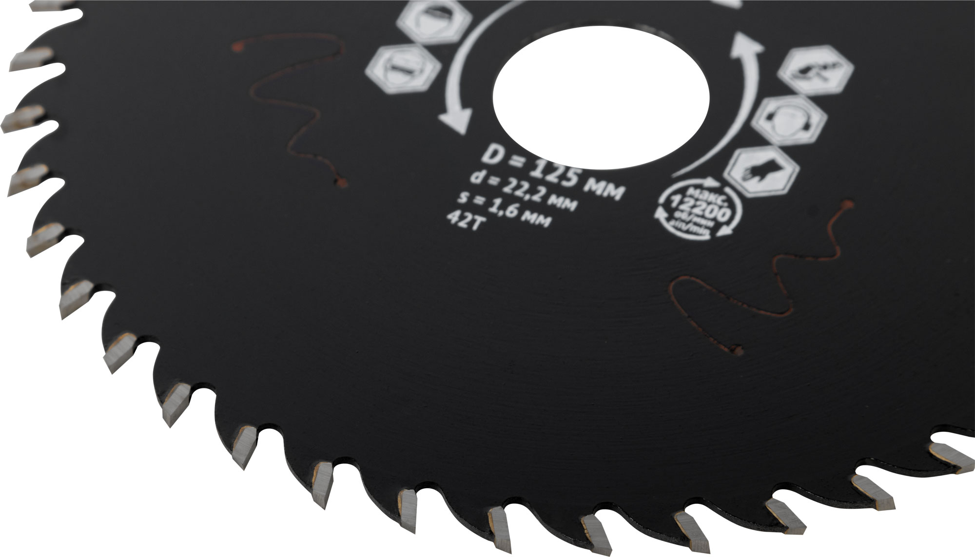 Диск пильный по дереву, посадочный диаметр 22,2 мм, 42 зуба с карбидными вставками, 125 мм