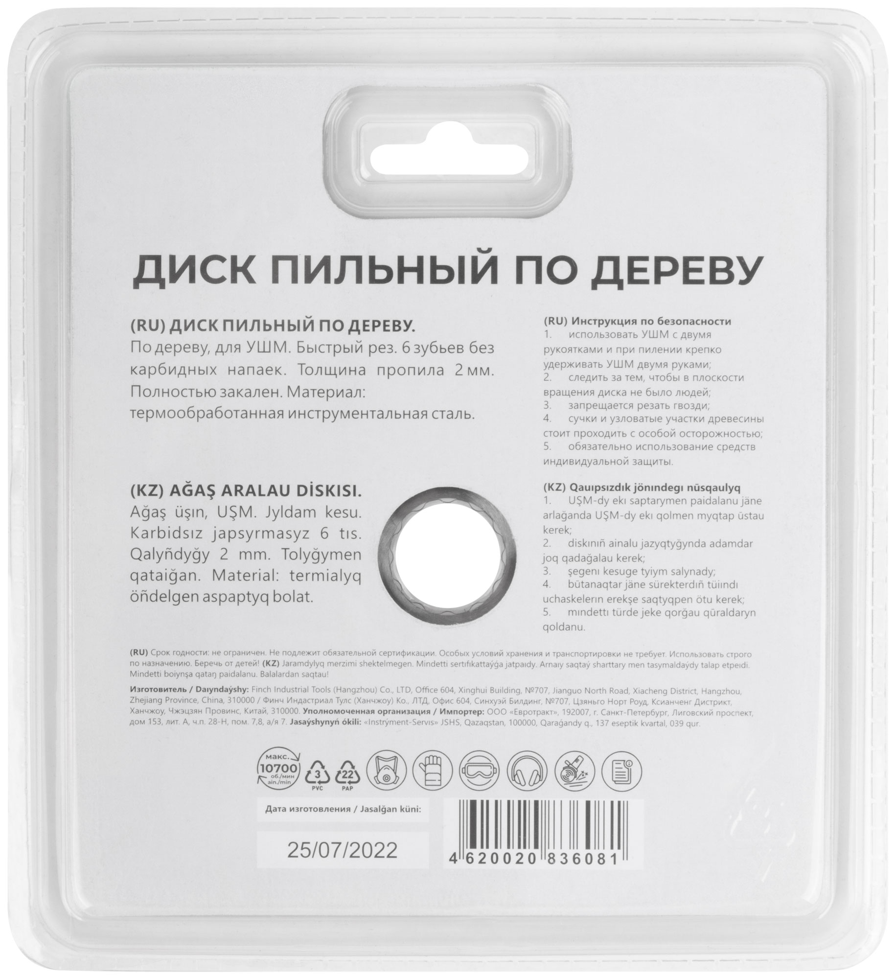 По дереву, для УШМ. Быстрый рез. Без карбидных напаек. Полностью закален. Материал: термообработанная инструментальная сталь.