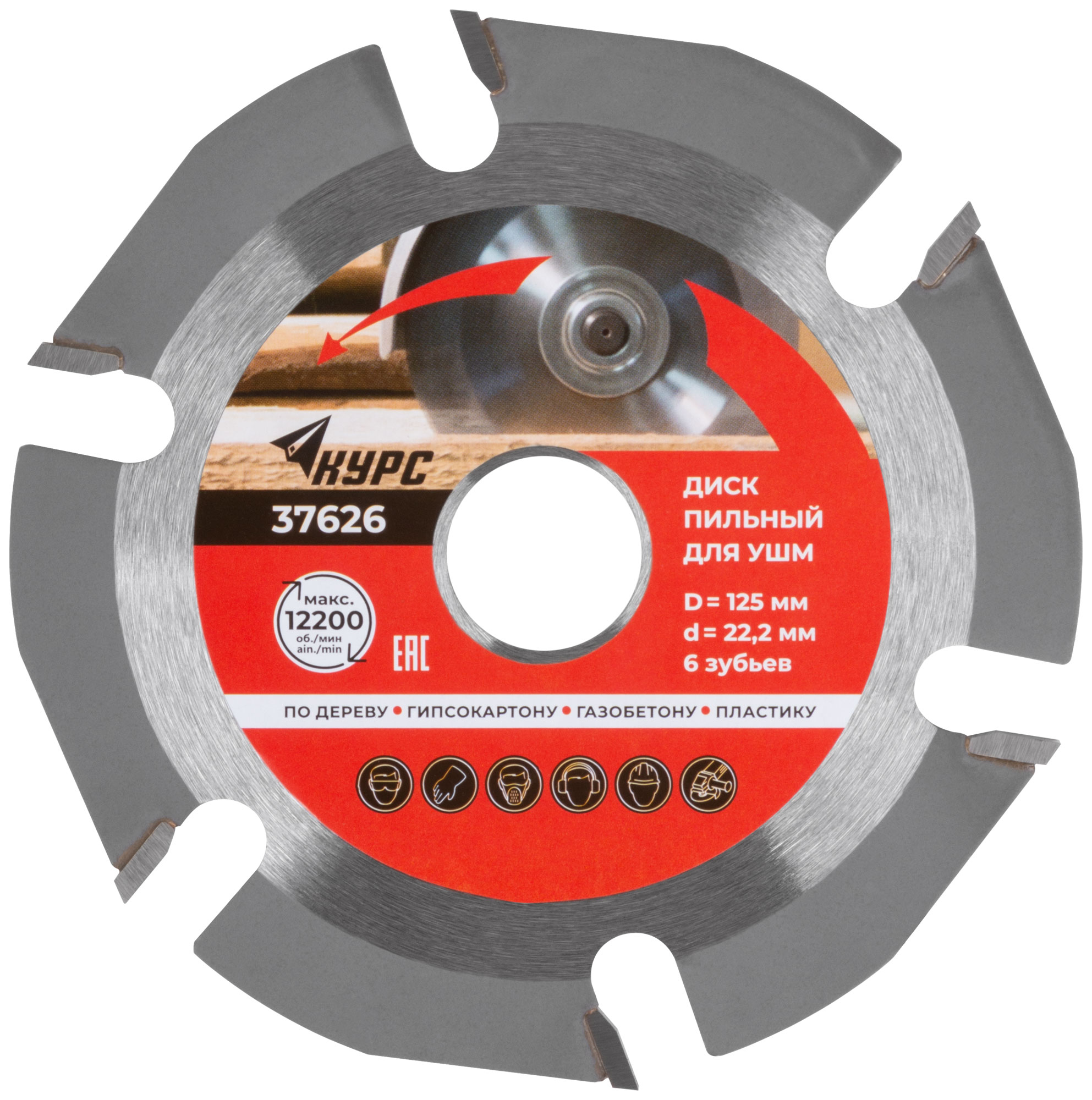 Диск пильный по дереву, посадочный диаметр 22,2 мм, 6 зубьев с карбидными вставками, 125 мм
