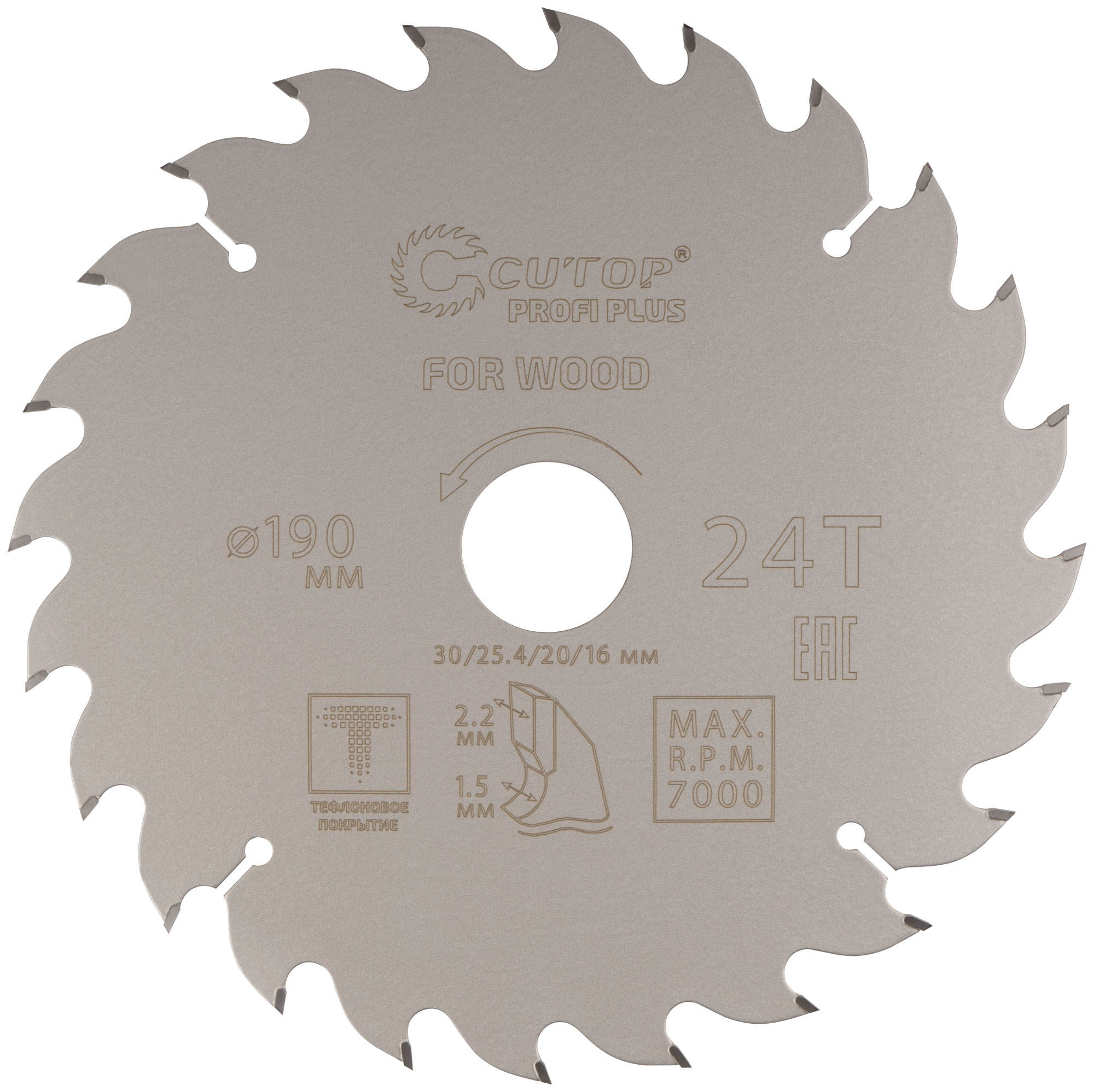 Диск пильный по дереву с тефлоновым покрытием 24Т, CUTOP Profi plus, 190 х 1,5/2,2 х 30/25,4/20/16 мм