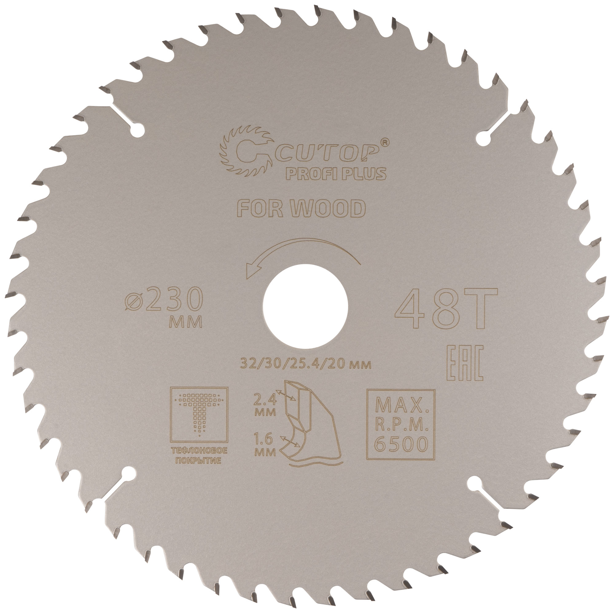 Диск пильный по дереву с тефлоновым покрытием 48Т, CUTOP Profi plus, 230 х 1,6/2,4 х 32/30/25,4/20 мм