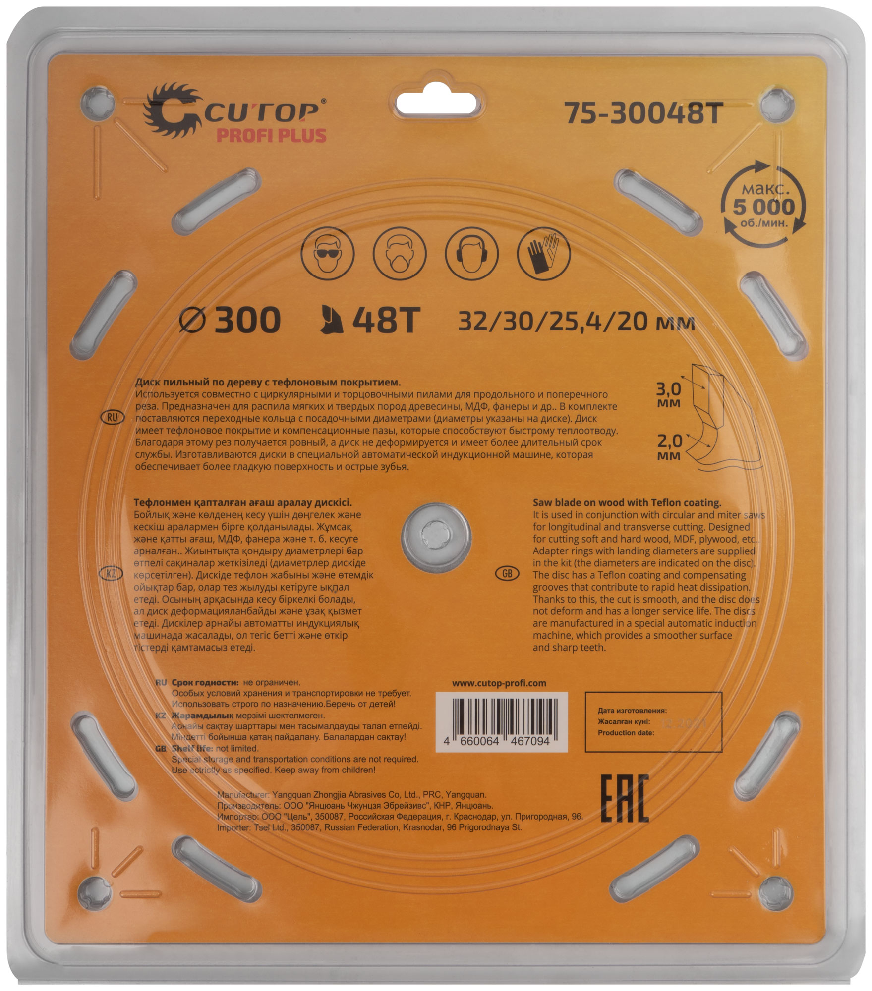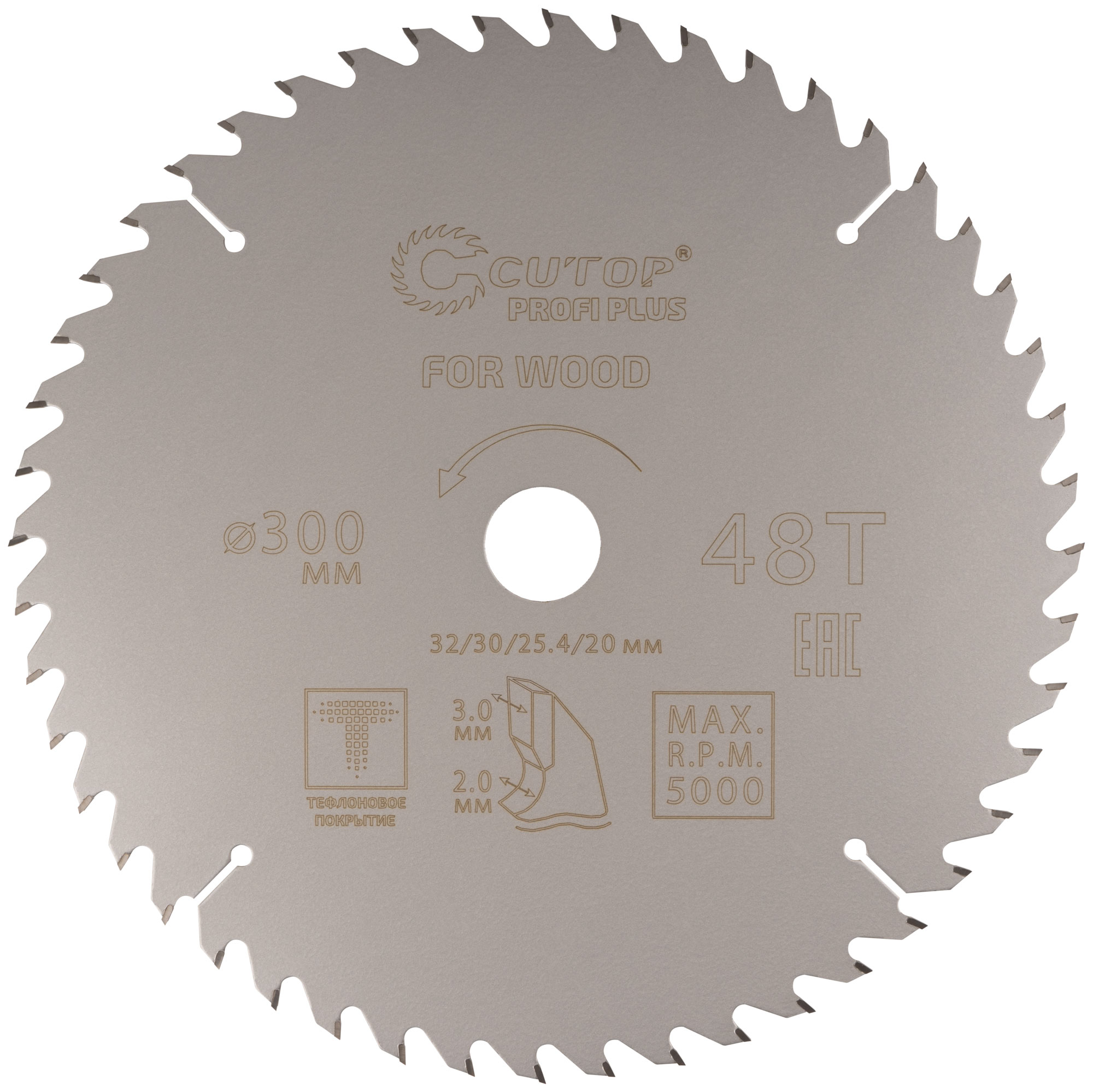 Диск пильный по дереву с тефлоновым покрытием 48Т, CUTOP Profi plus, 300 х 2,0/3,0 х 32/30/25,4/20 мм