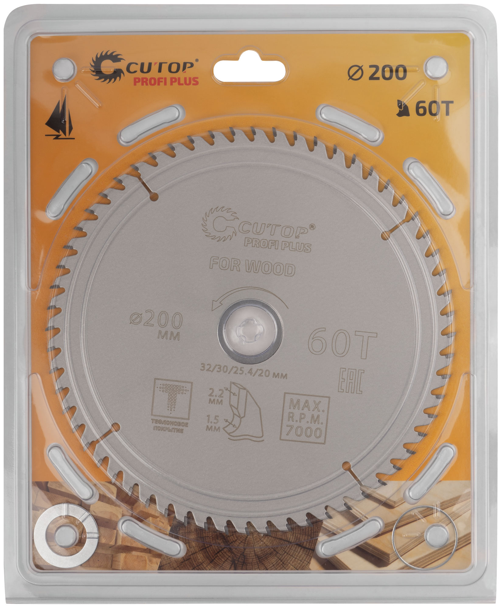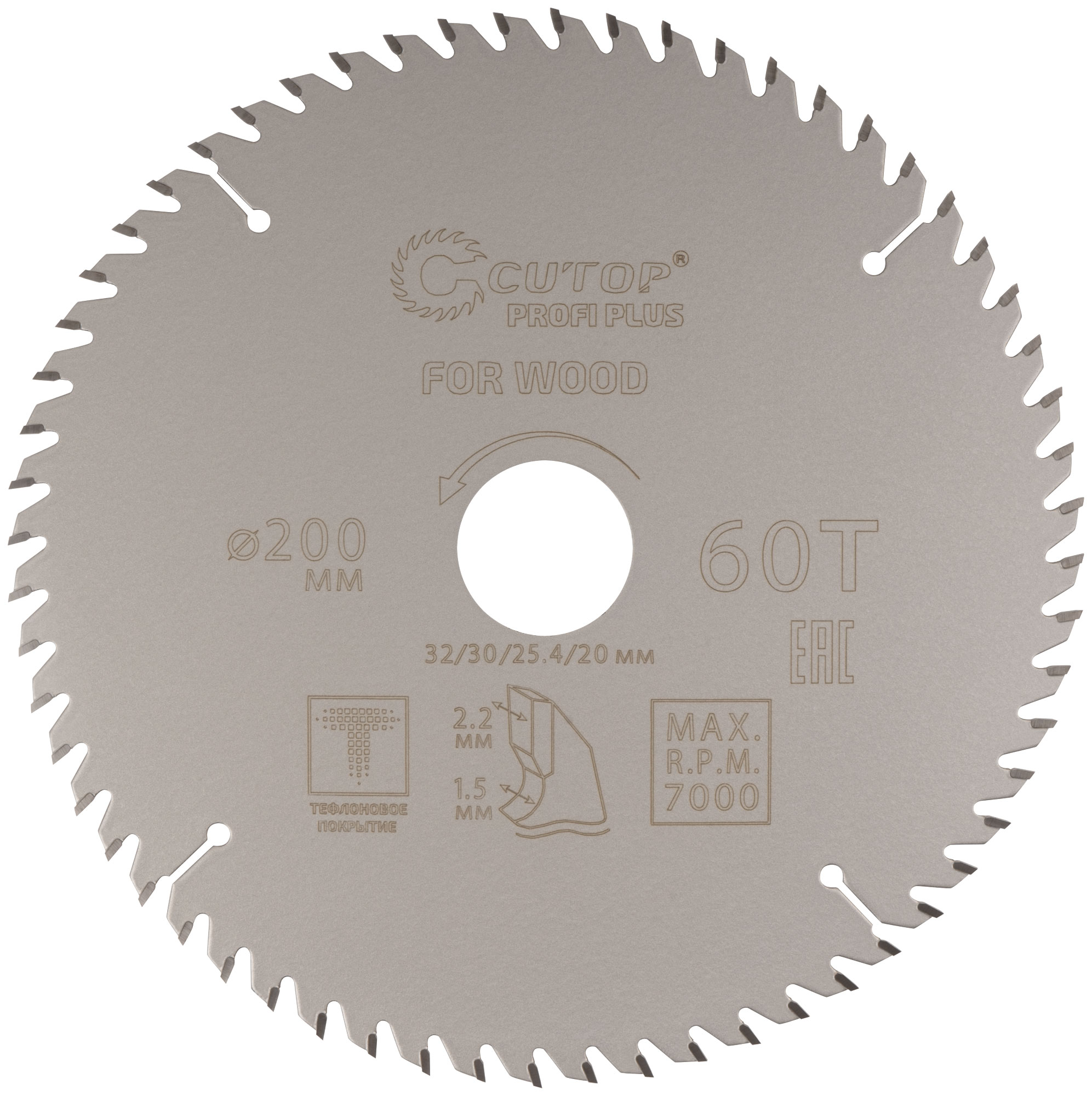 Диск пильный по дереву с тефлоновым покрытием 60Т, CUTOP Profi plus, 200 х 1,5/2,2 х 32/30/25,4/20 мм