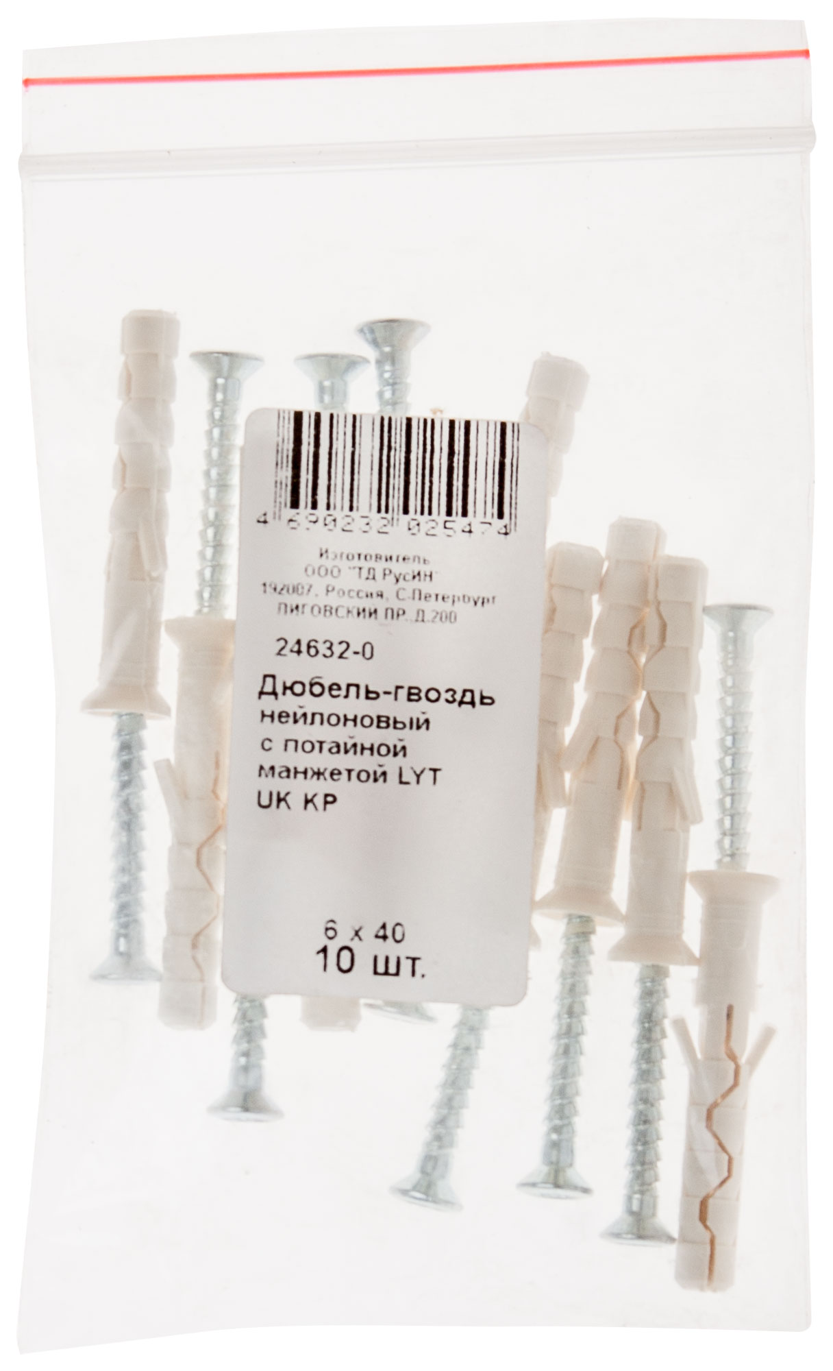 Дюбель-гвоздь нейлоновый с потайной манжетой LYT UK KP 6 х 40, 10 шт. Фасовка