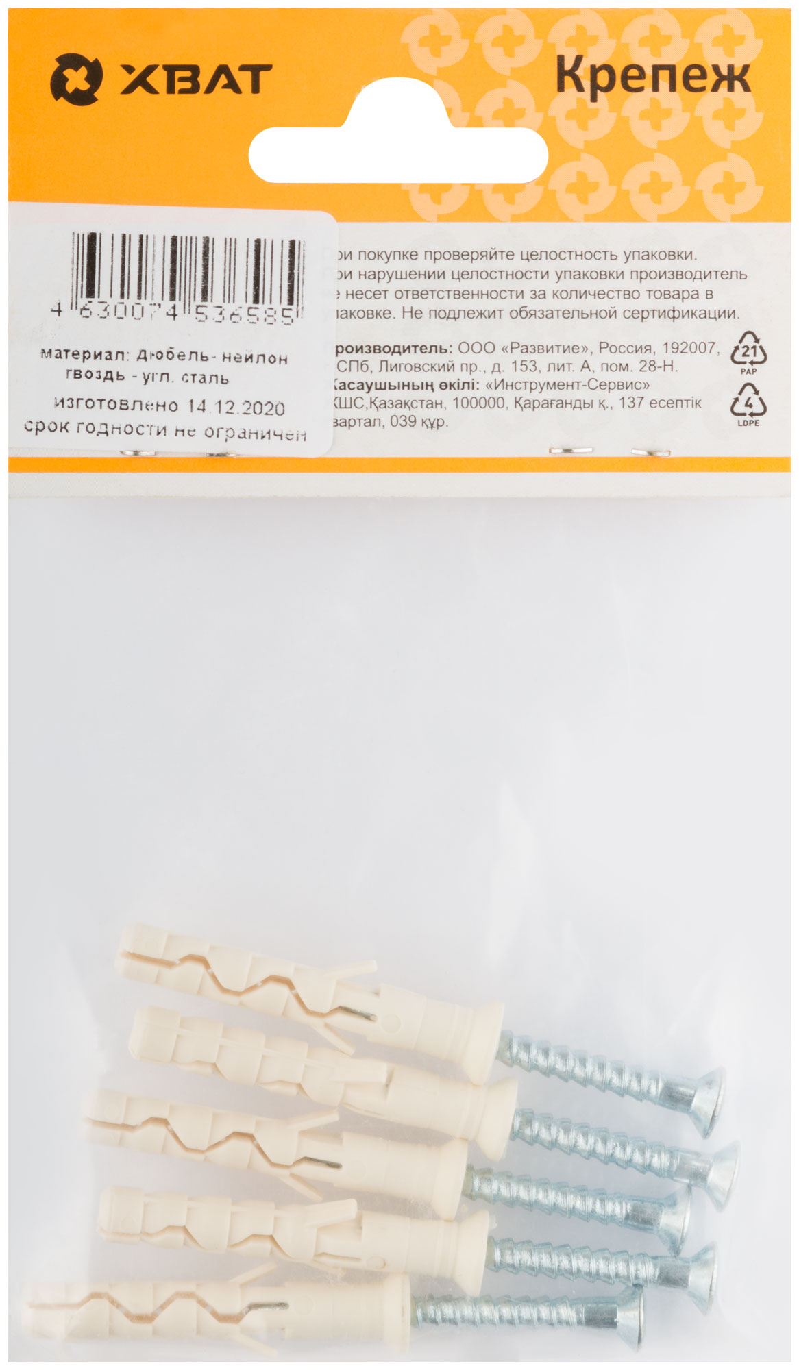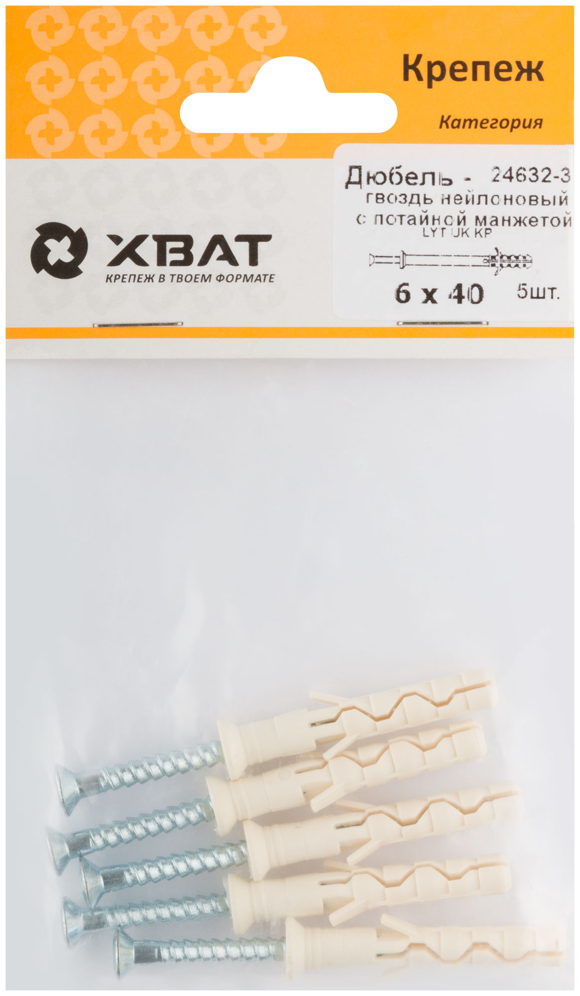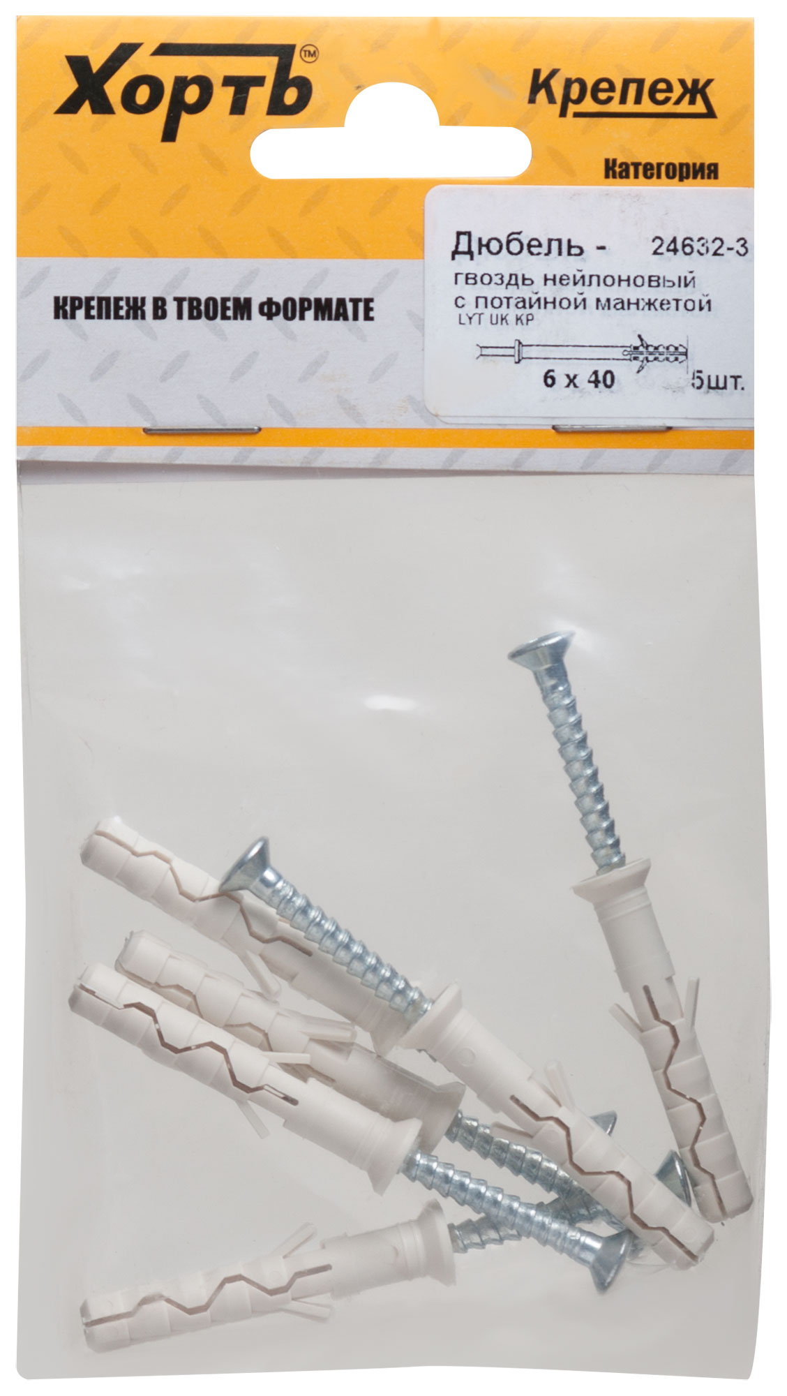 Дюбель-гвоздь нейлоновый с потайной манжетой LYT UK KP 6 х 40 (фасовка 5 шт.)
