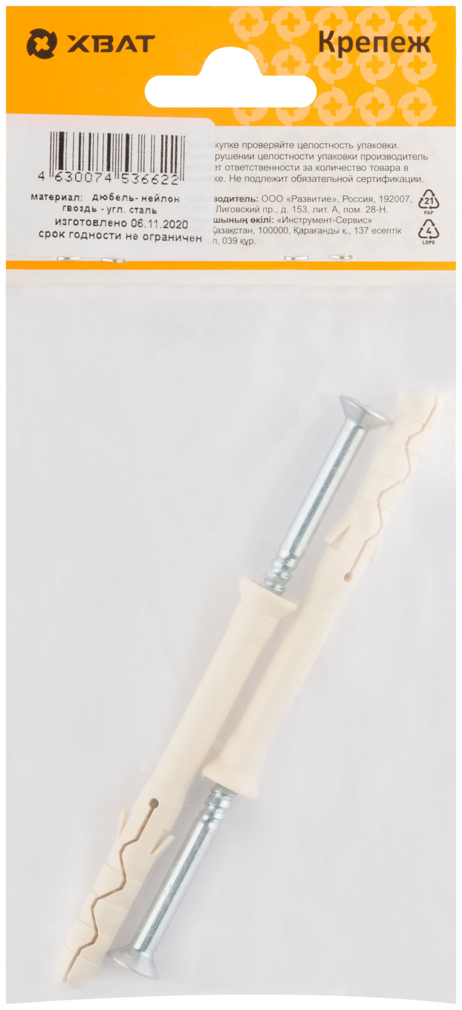 Дюбель-гвоздь нейлоновый с потайной манжетой LYT UK KP 8 х 80 (фасовка 2 шт.)