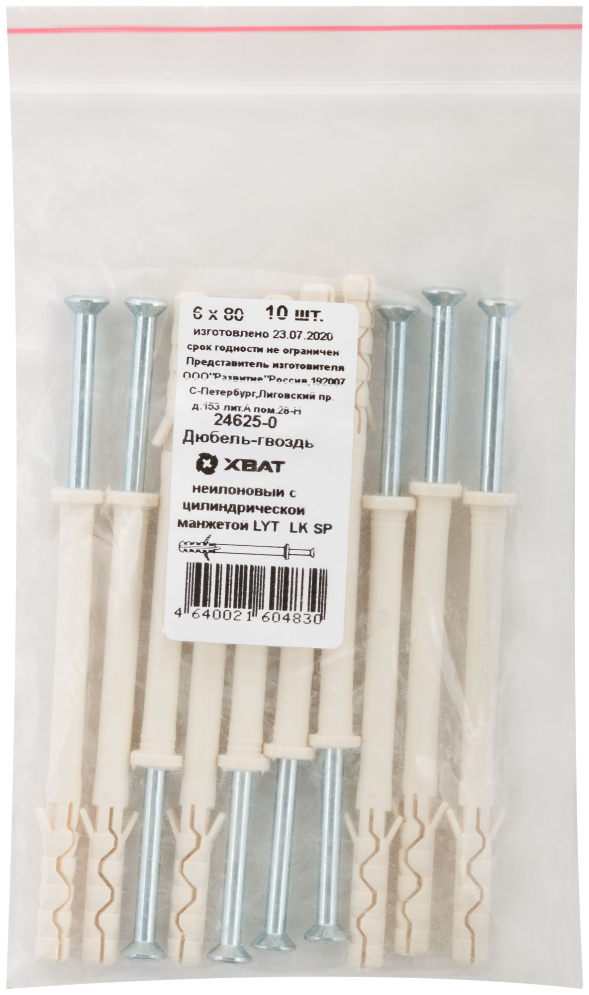 Дюбель-гвоздь нейлоновый с цилиндрической манжетой LYT LK SP 6 х 80, 10 шт. Фасовка