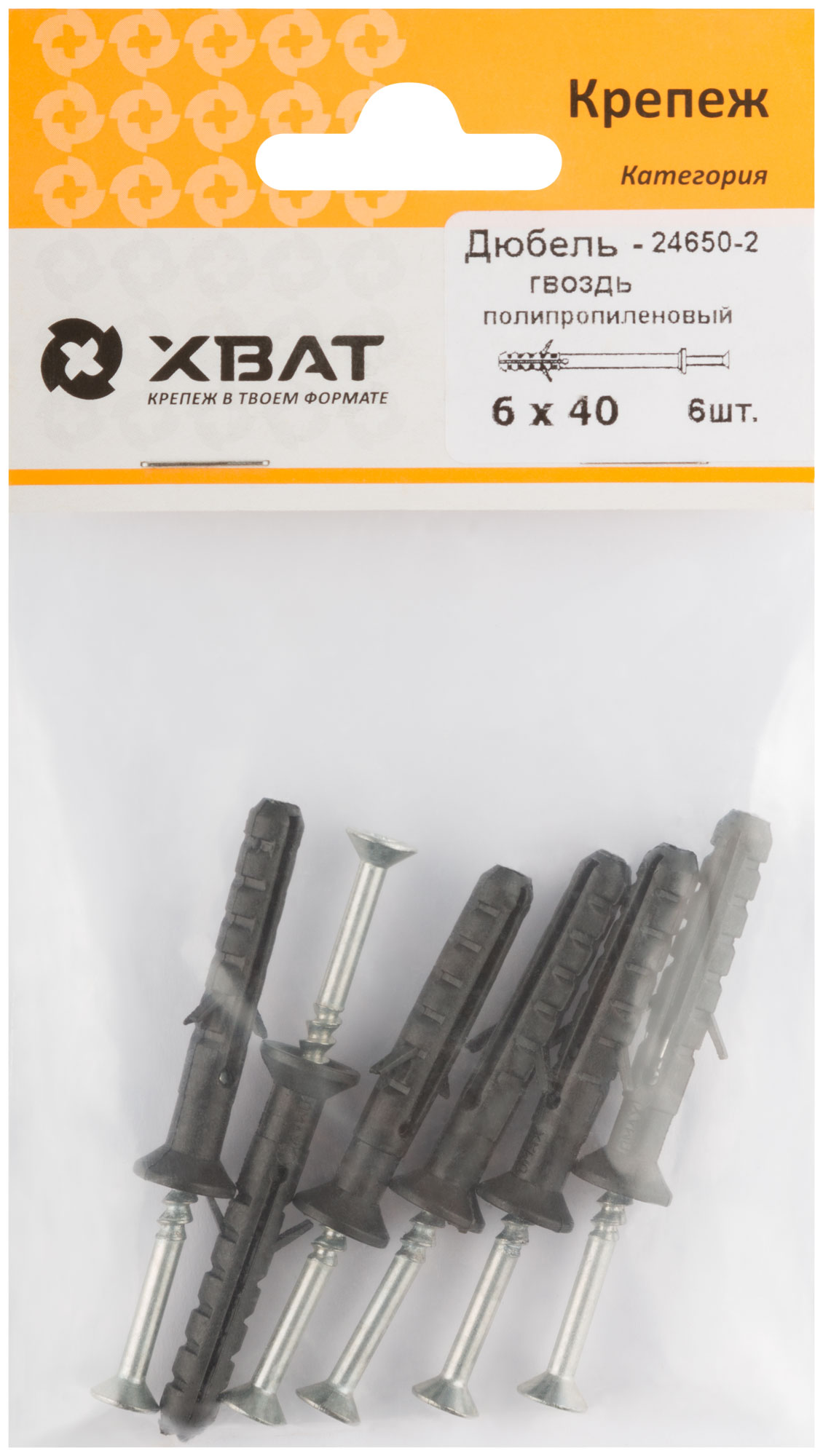 Дюбель-гвоздь полипропиленовый 6 х 40 (фасовка 6 шт.)