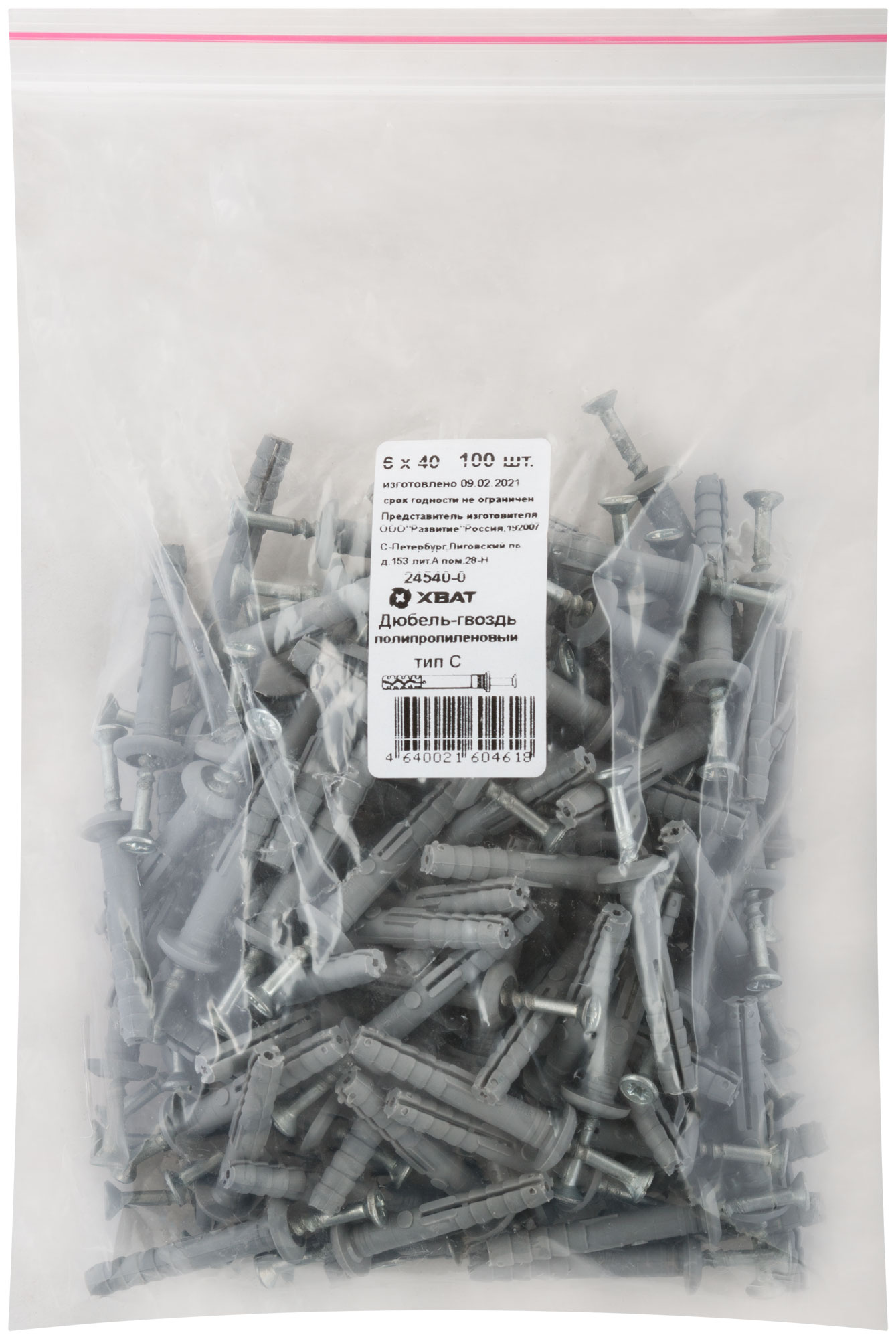 Дюбель-гвоздь полипропиленовый 6 х 40 тип С 100 шт. Фасовка