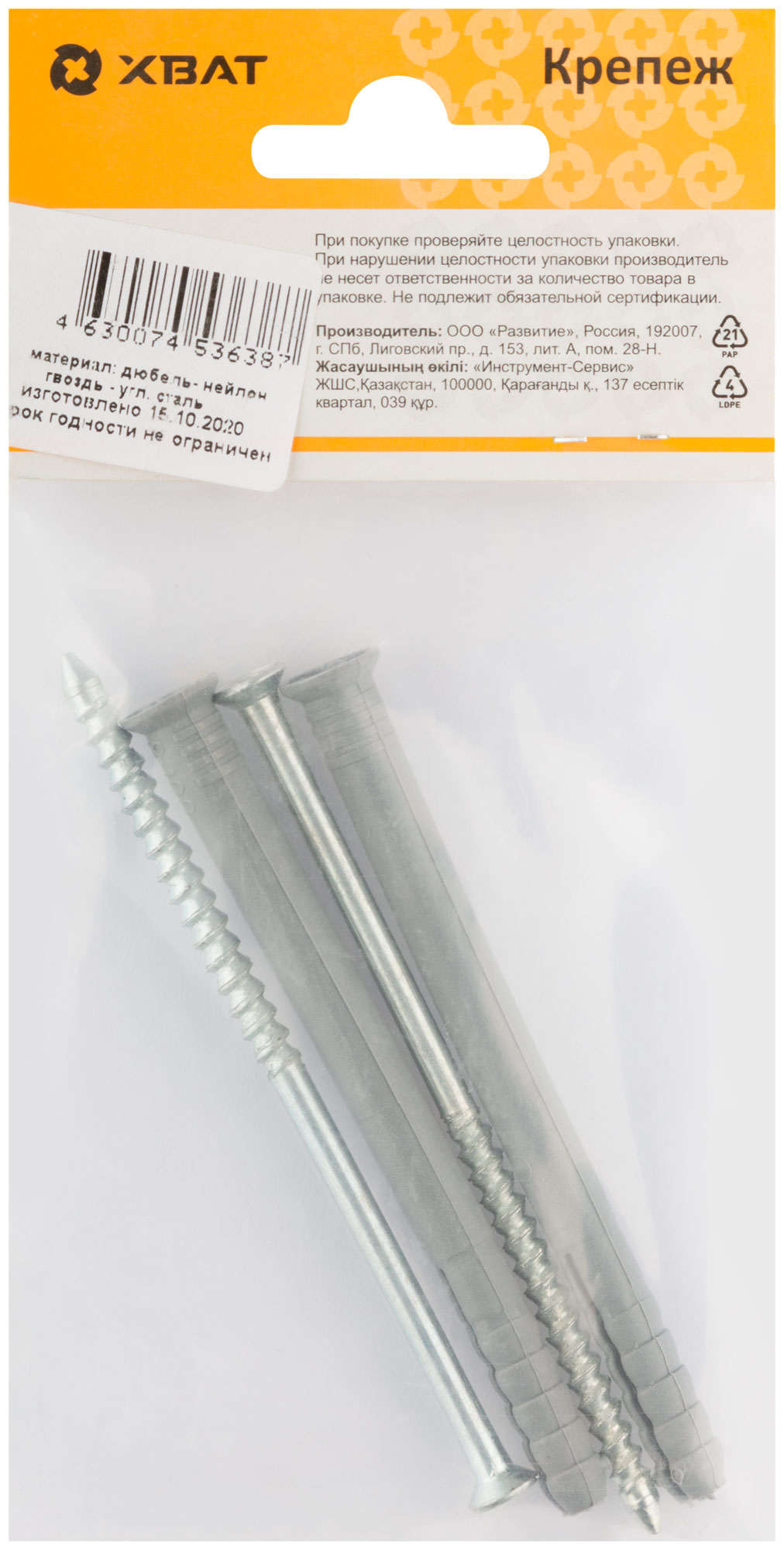 Дюбель-гвоздь полипропиленовый 8 х 100 (фасовка 2 шт.)