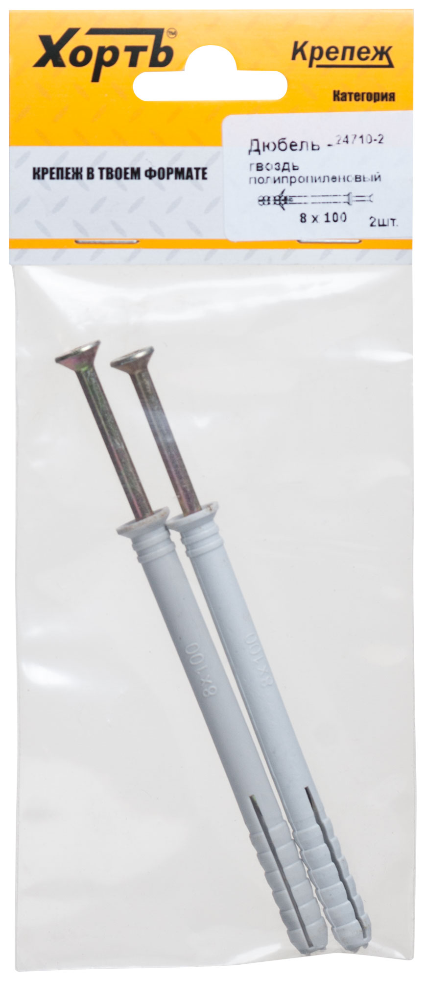 Дюбель-гвоздь полипропиленовый 8 х 100 (фасовка 2 шт.)