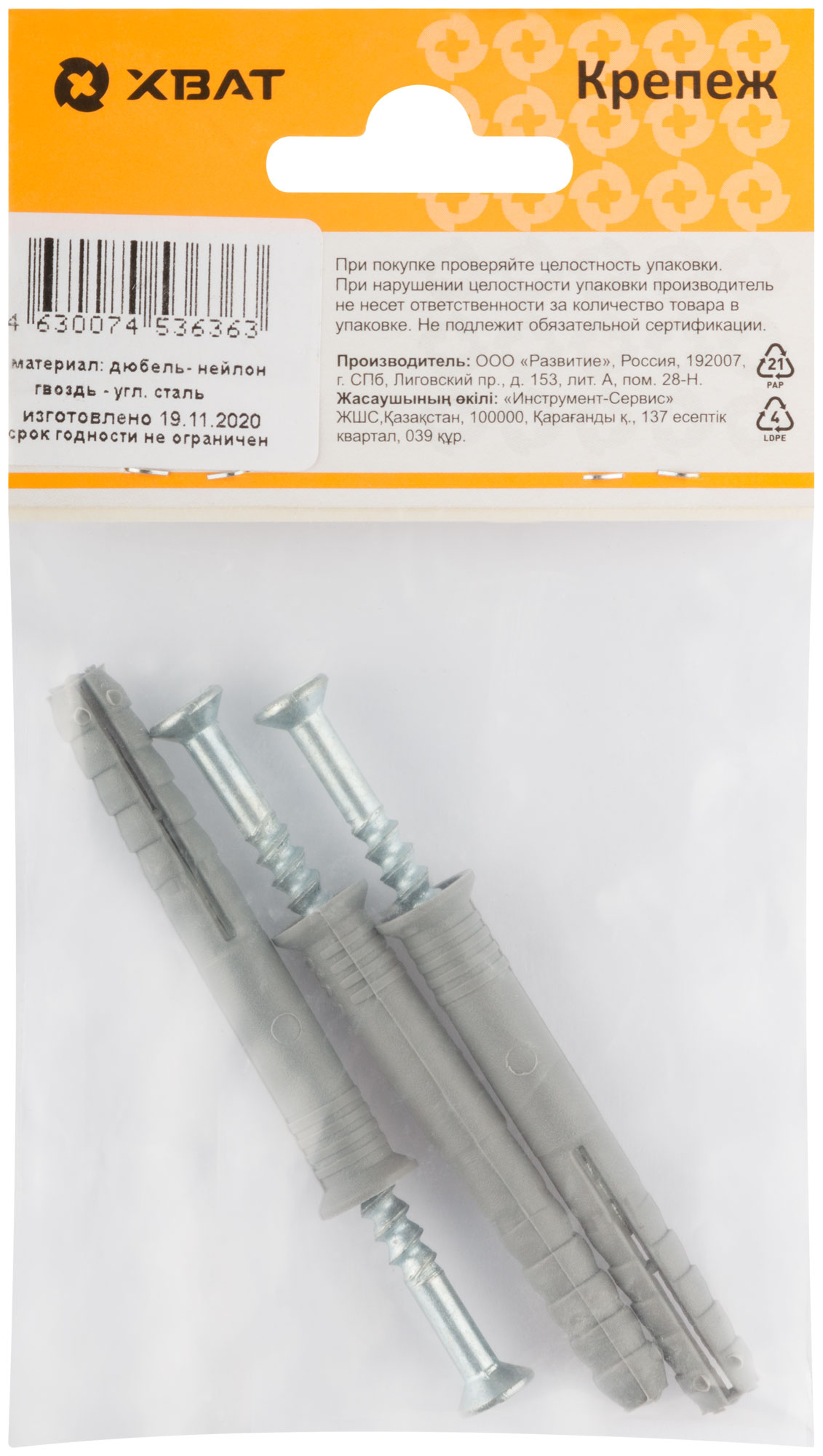 Дюбель-гвоздь полипропиленовый 8 х 60 (фасовка 3 шт.)