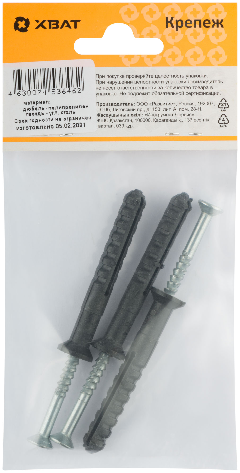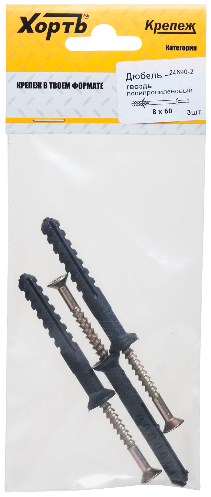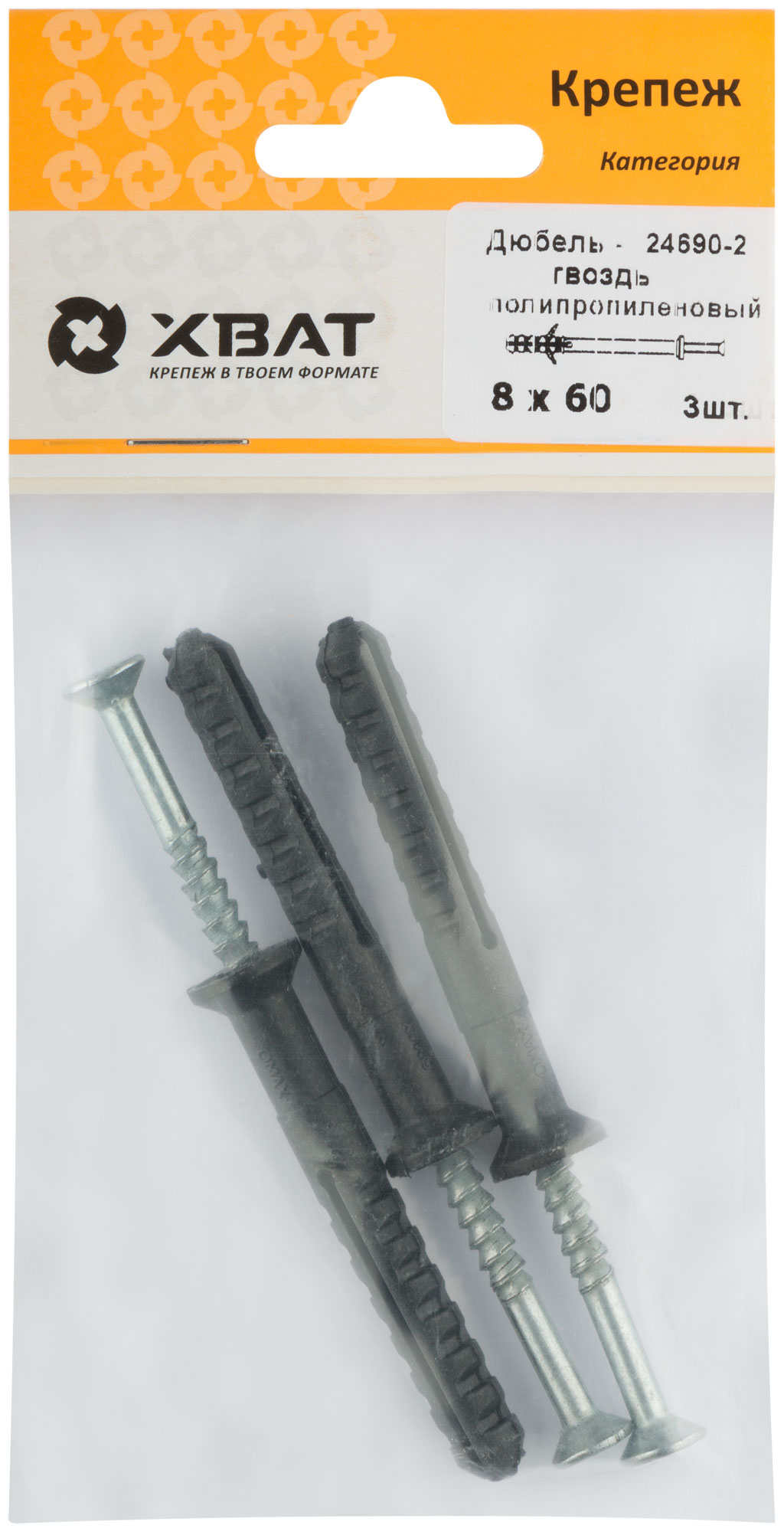 Дюбель-гвоздь полипропиленовый 8 х 60 (фасовка 3 шт.)