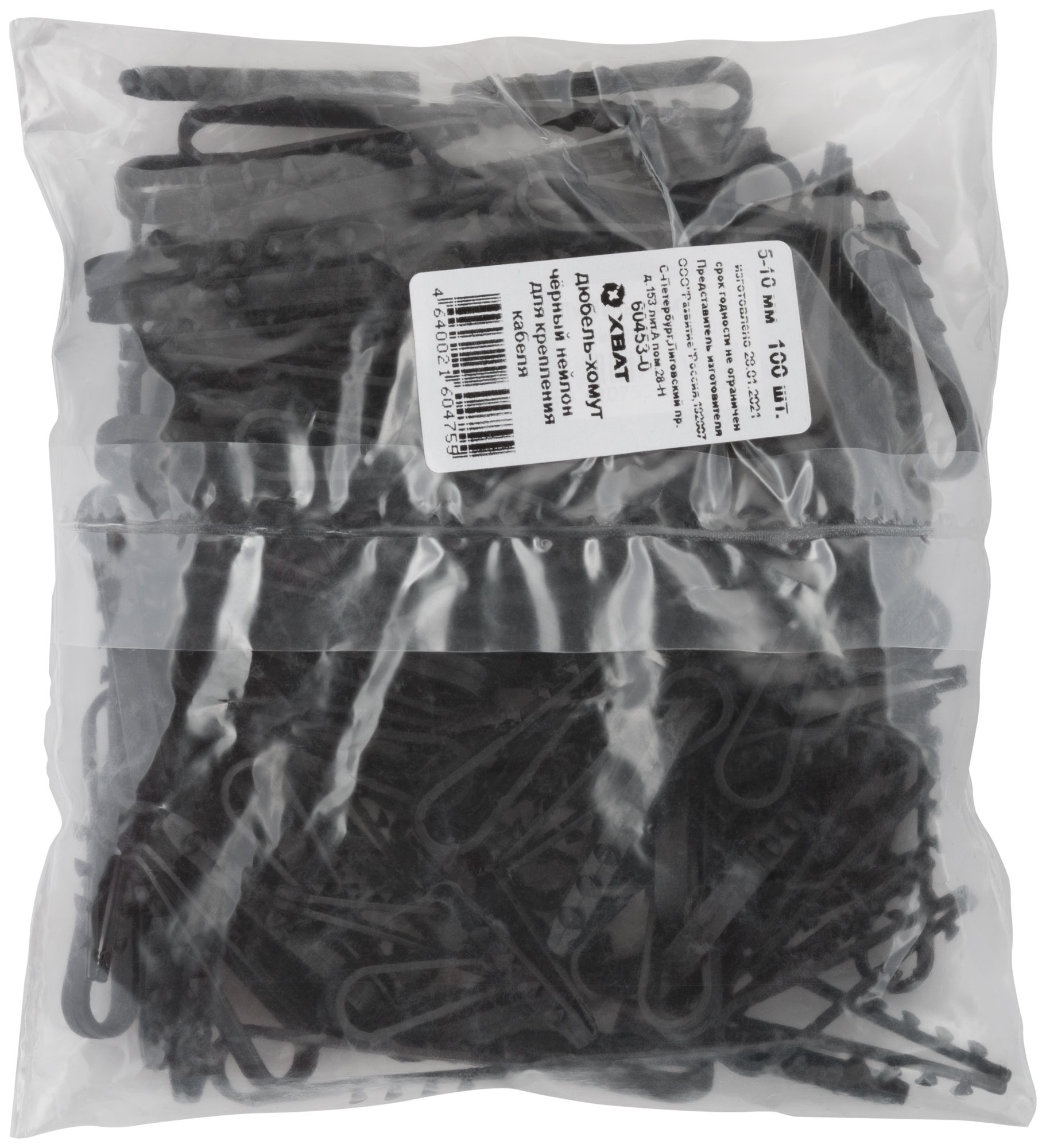 Дюбель-хомут для крепления кабеля 5-10 мм черный, 100 шт. Фасовка