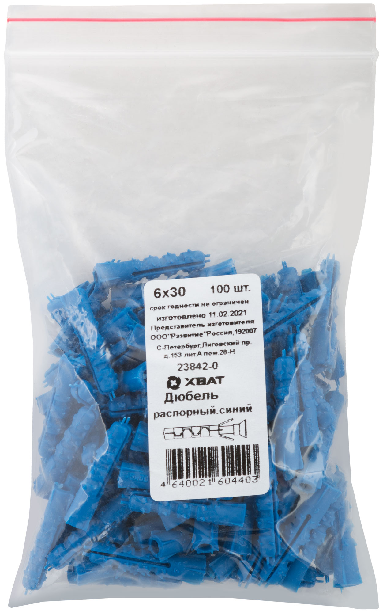 Дюбель распорный с шипами тип К синий 6 х 30 100 шт. Фасовка