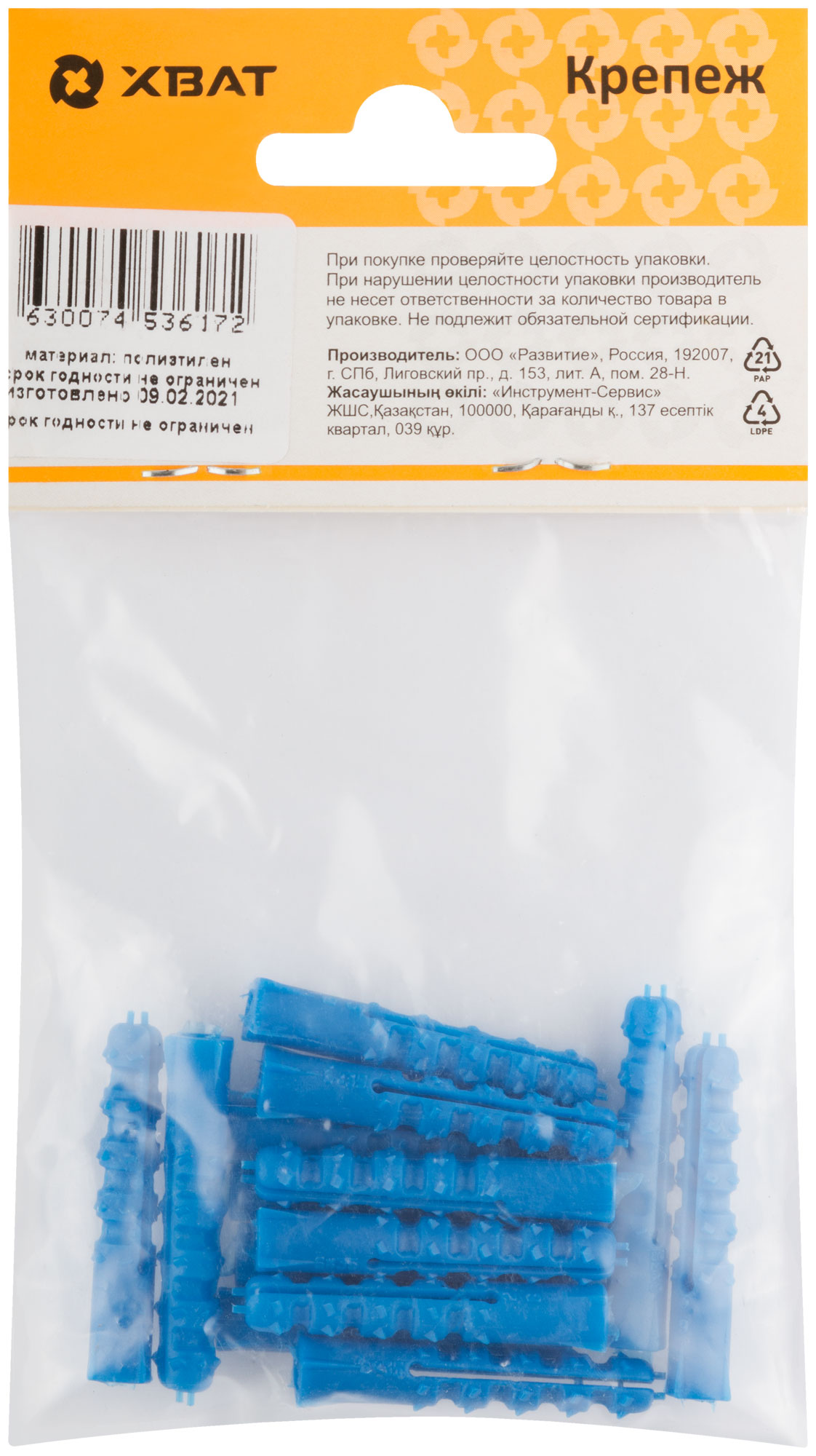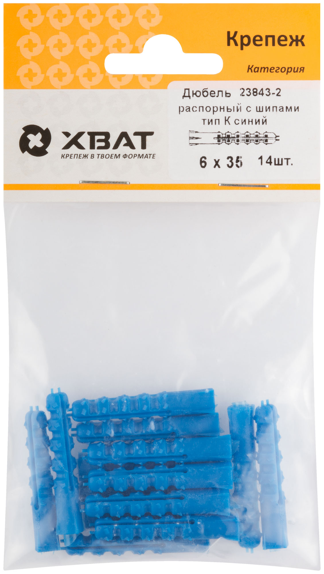 Дюбель распорный с шипами тип К синий 6 х 35 (фасовка 14 шт.)