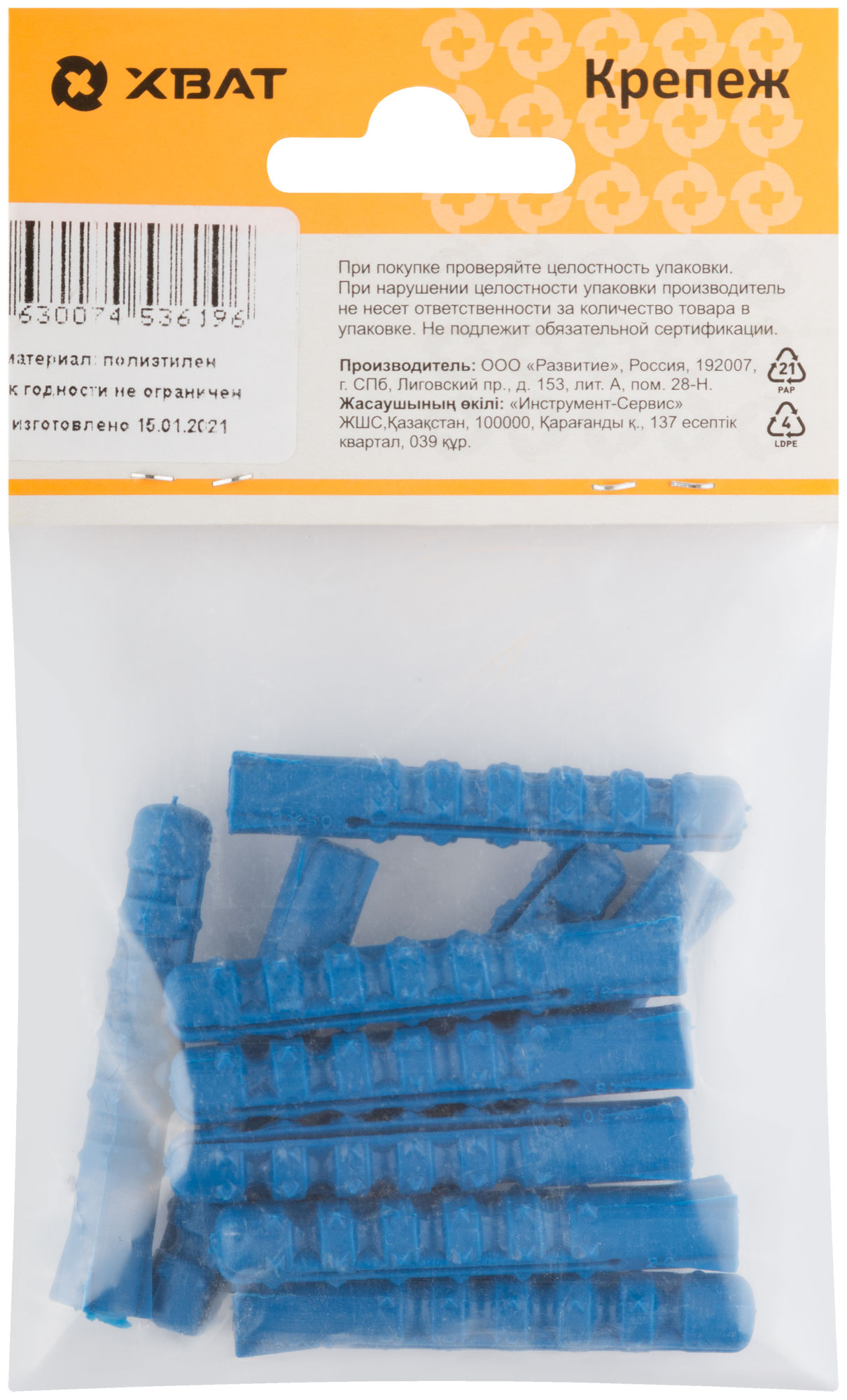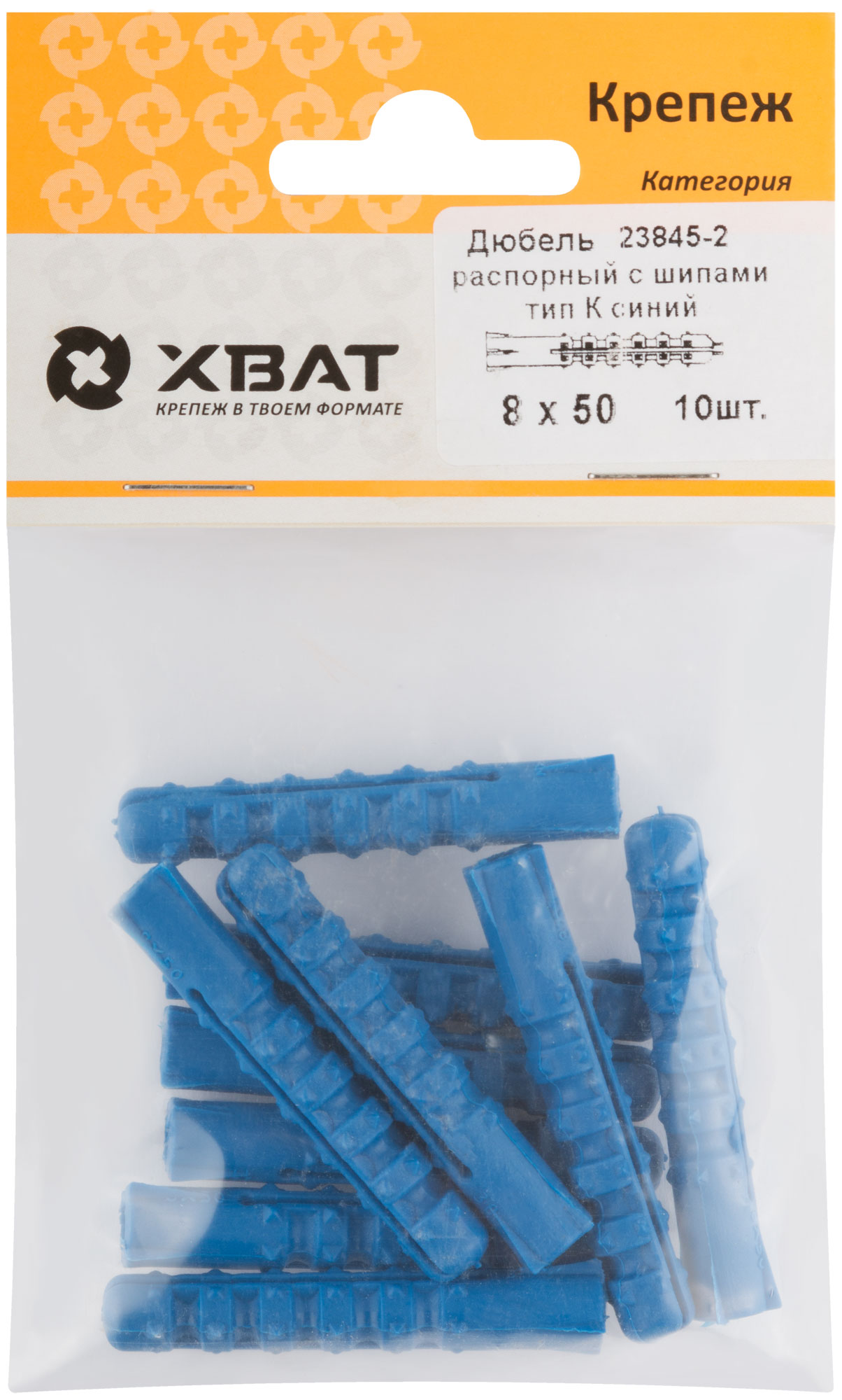 Дюбель распорный с шипами тип К синий 8 х 50 (фасовка 10 шт.)