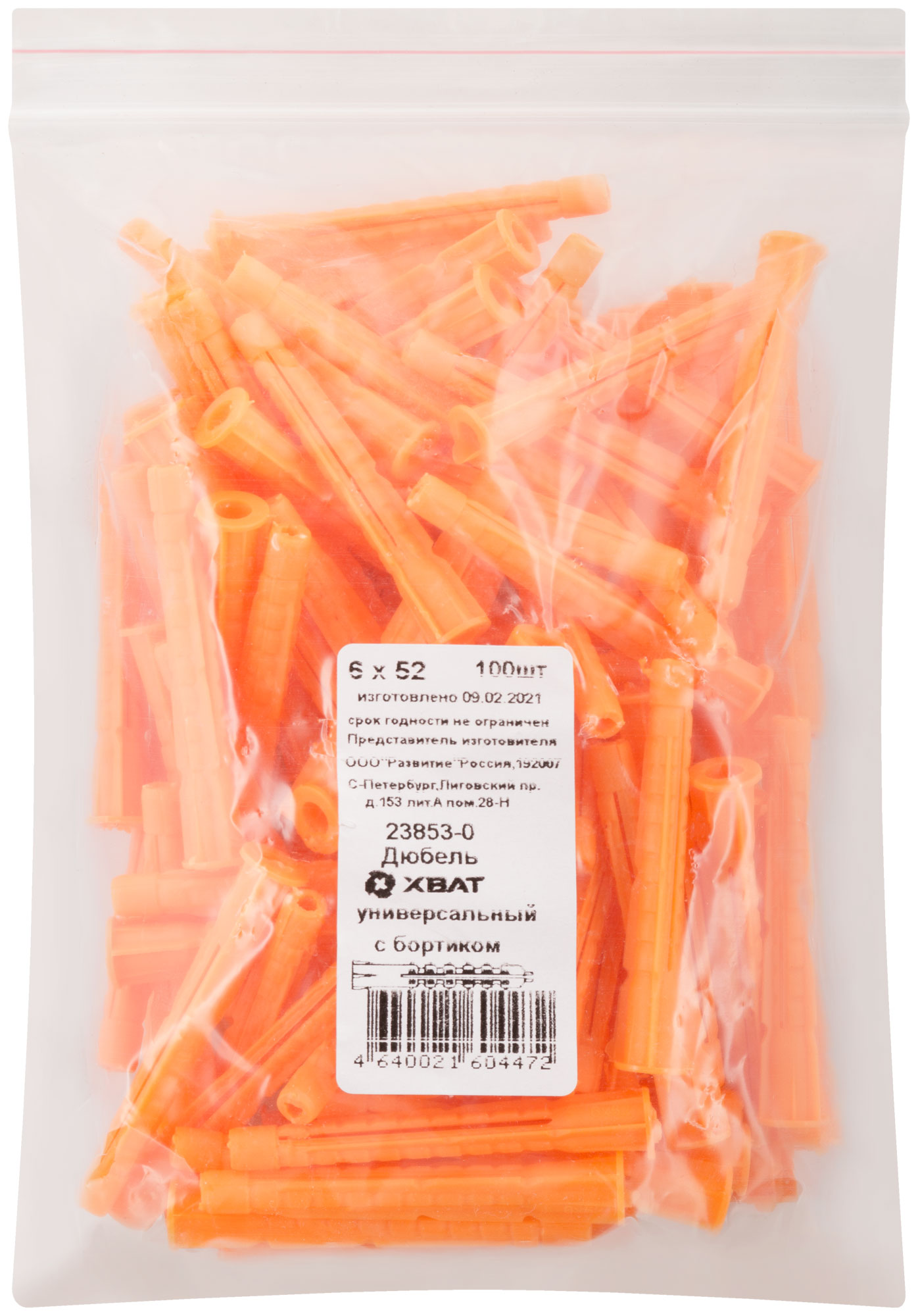 Дюбель универсальный с бортиком (U) 6 х 52 100 шт. Фасовка