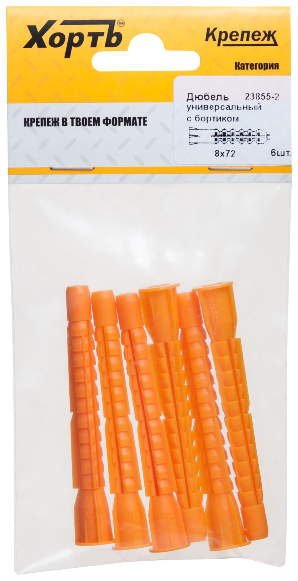 Дюбель универсальный с бортиком (U) 8 х 72 (фасовка 6 шт.)