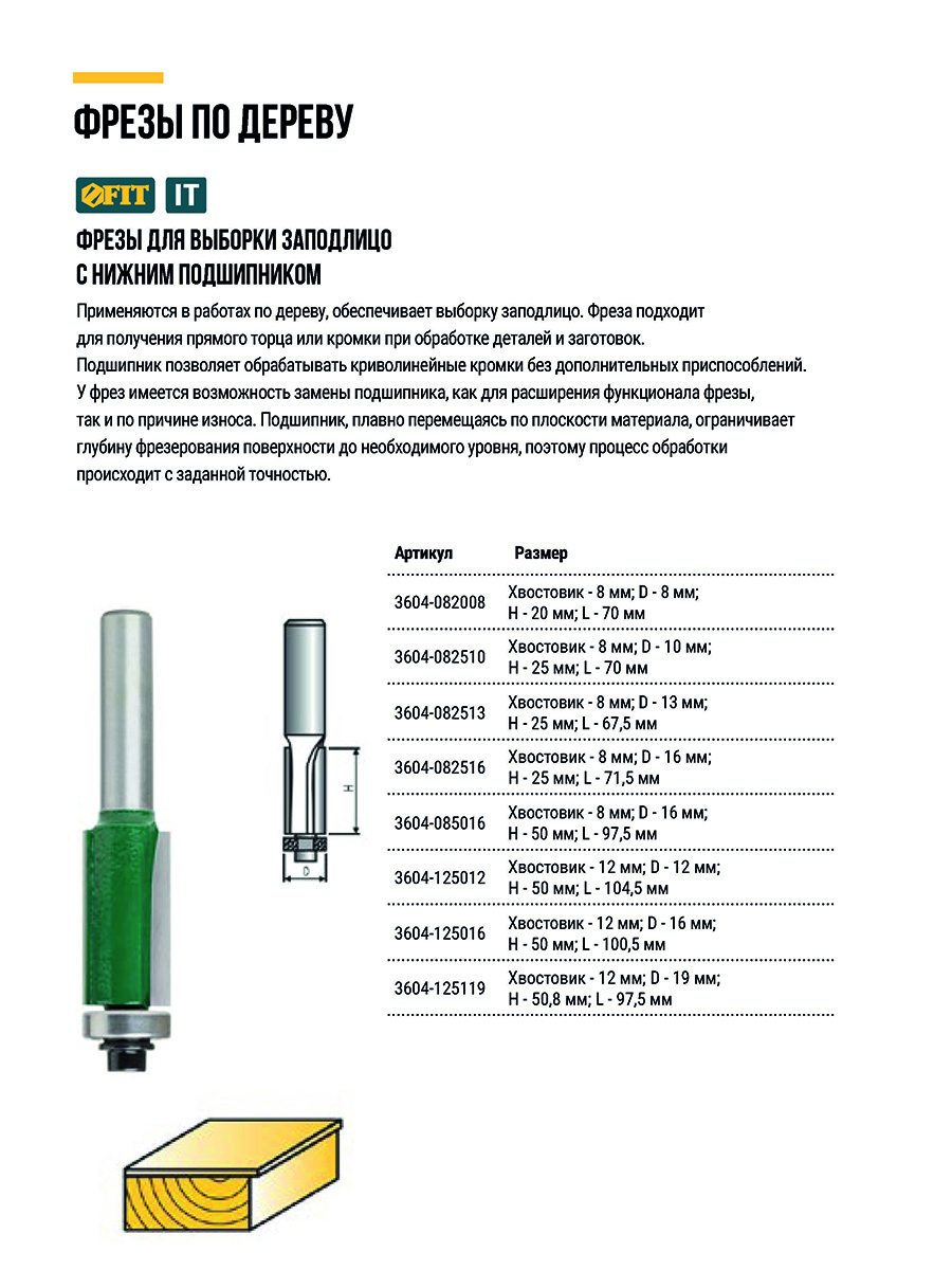 Используется для работ по дереву. С нижним подшипником. Для выборки заподлицо. Цилиндрический хвостовик. Материал: инструментальная сталь, с твердосплавными режущими вставками. Упаковка: пластиковая коробка.