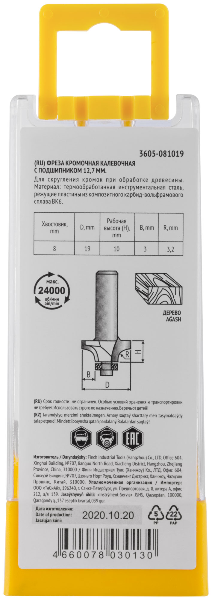 Используется для работ по дереву. С нижним подшипником. Для фрезерования кромок. Цилиндрический хвостовик. Материал: инструментальная сталь, с твердосплавными режущими вставками. Упаковка: пластиковая коробка.