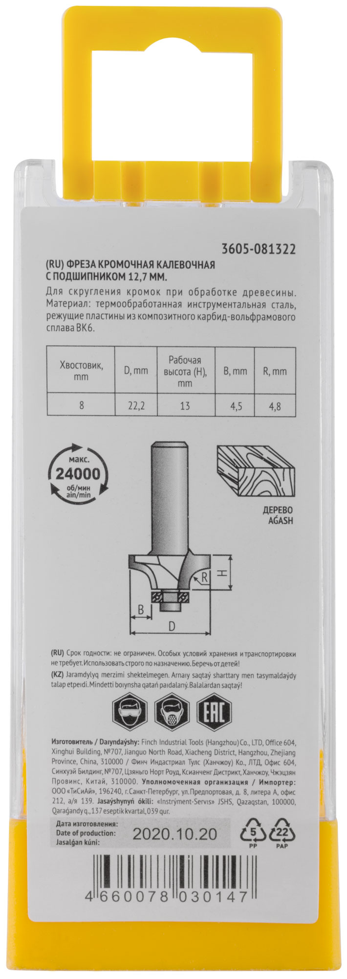 Используется для работ по дереву. С нижним подшипником. Для фрезерования кромок. Цилиндрический хвостовик. Материал: инструментальная сталь, с твердосплавными режущими вставками. Упаковка: пластиковая коробка.