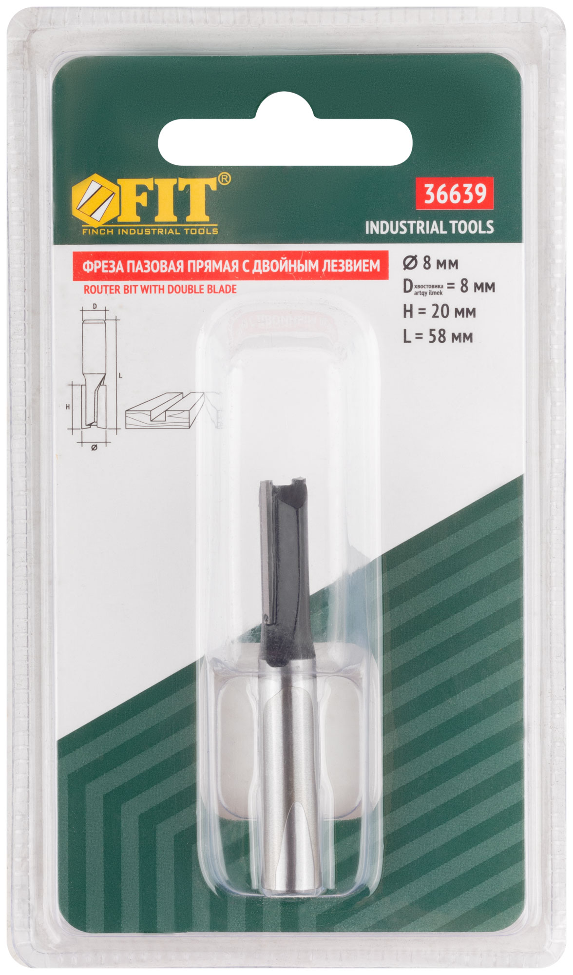 Фреза пазовая прямая с двойным лезвием, DxHxL = 8х20х58 мм
