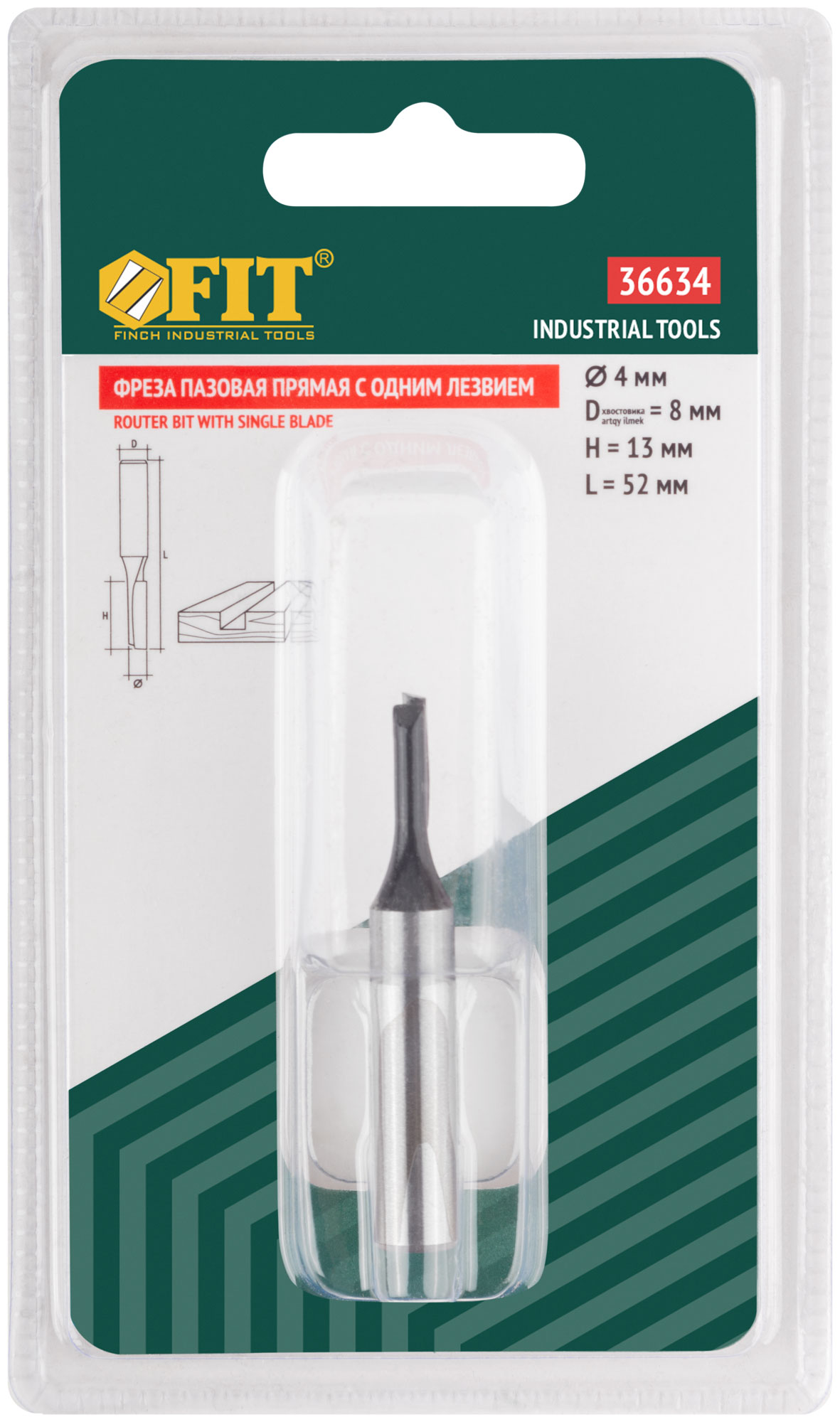 Фреза пазовая прямая с одним лезвием, DxHxL = 4x13x52 мм