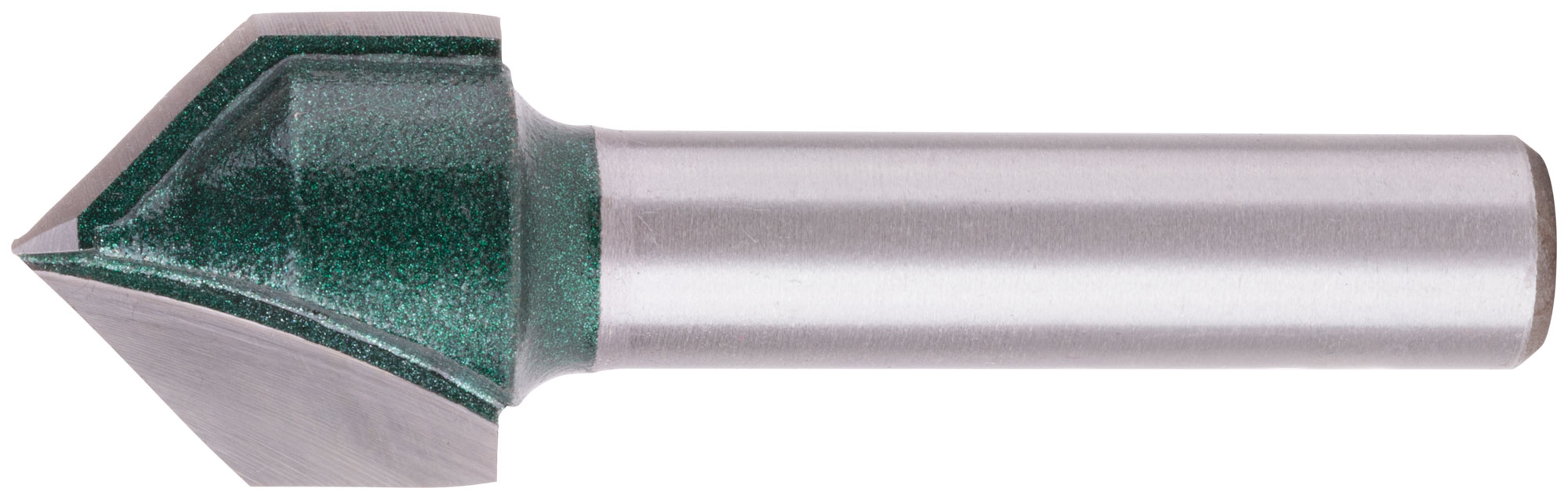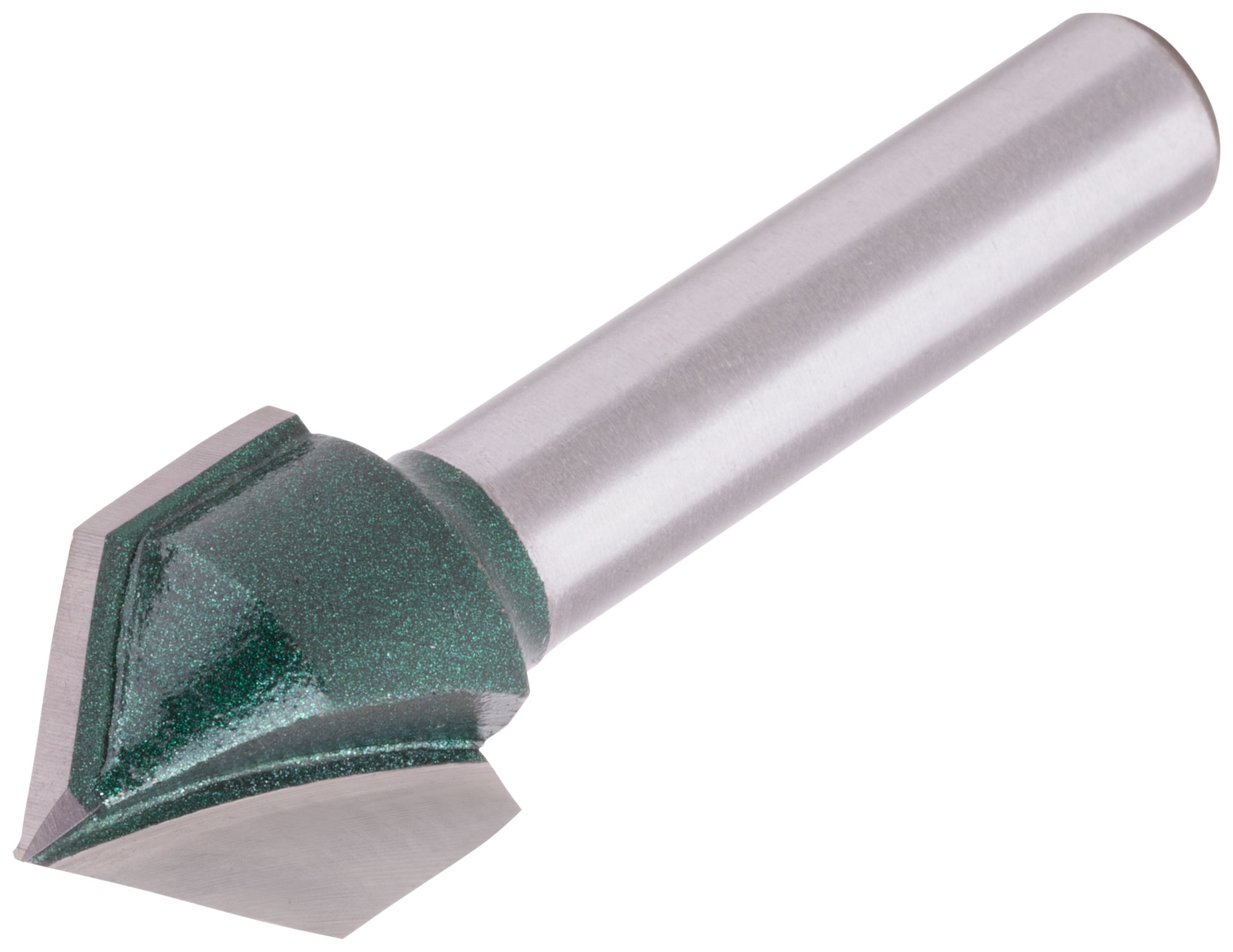 Используется для работ по дереву. Для фрезерования пазов. Угол при вершине 90°. Цилиндрический хвостовик. Материал: инструментальная сталь, с твердосплавными режущими вставками. Упаковка: пластиковая коробка.