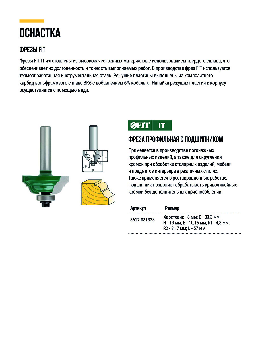 Используется для работ по дереву. С нижним подшипником. Для закругления кромки детали. Цилиндрический хвостовик. Материал: инструментальная сталь, с твердосплавными режущими вставками. Упаковка: пластиковая коробка.