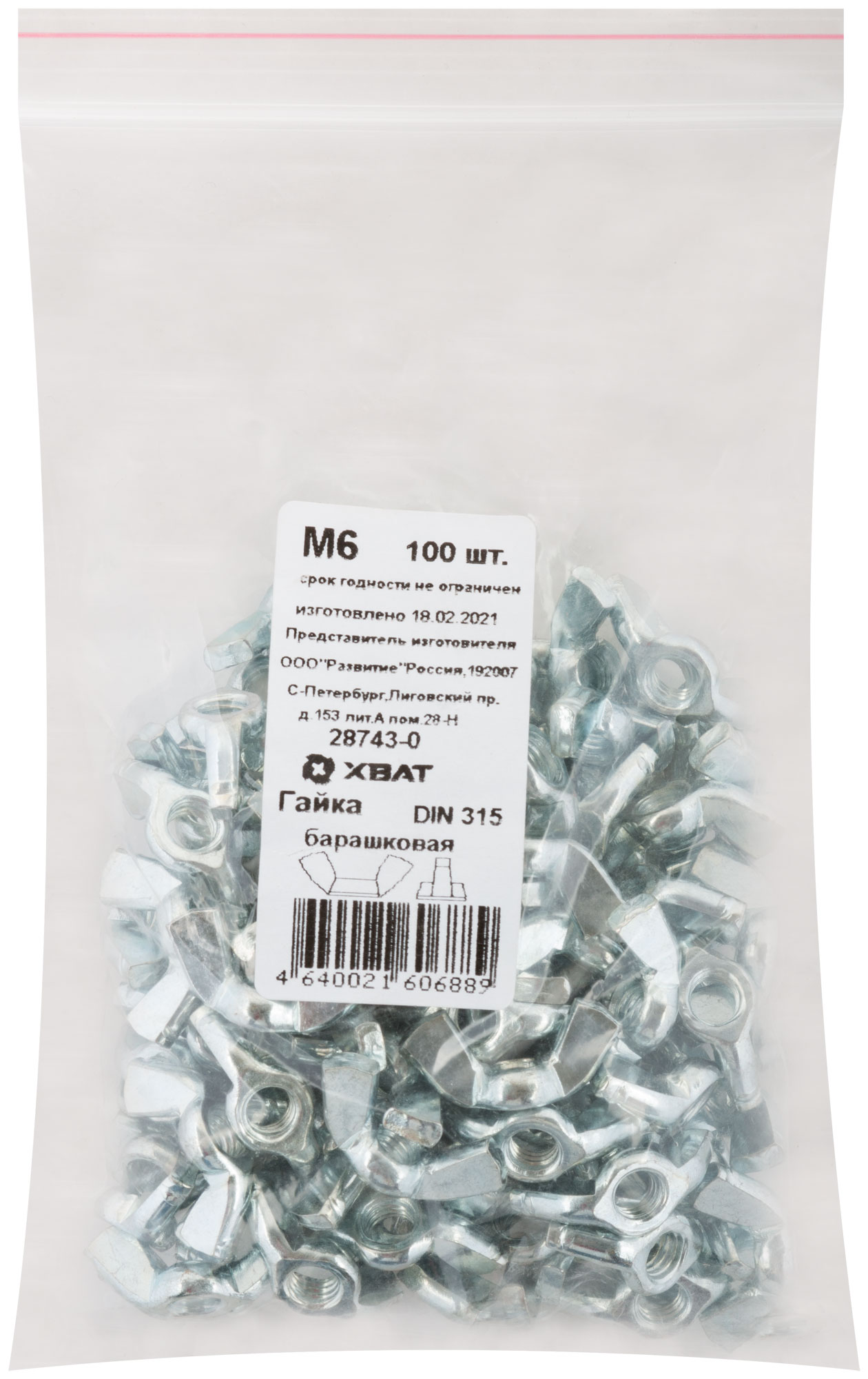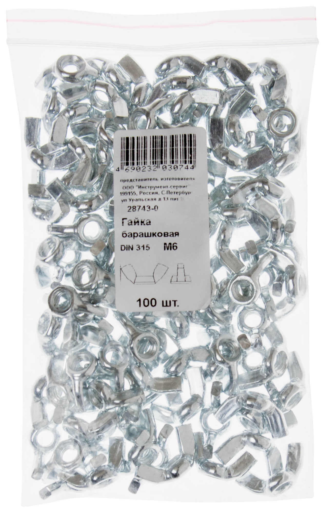 Гайка барашковая DIN 315 М6 100 шт. Фасовка