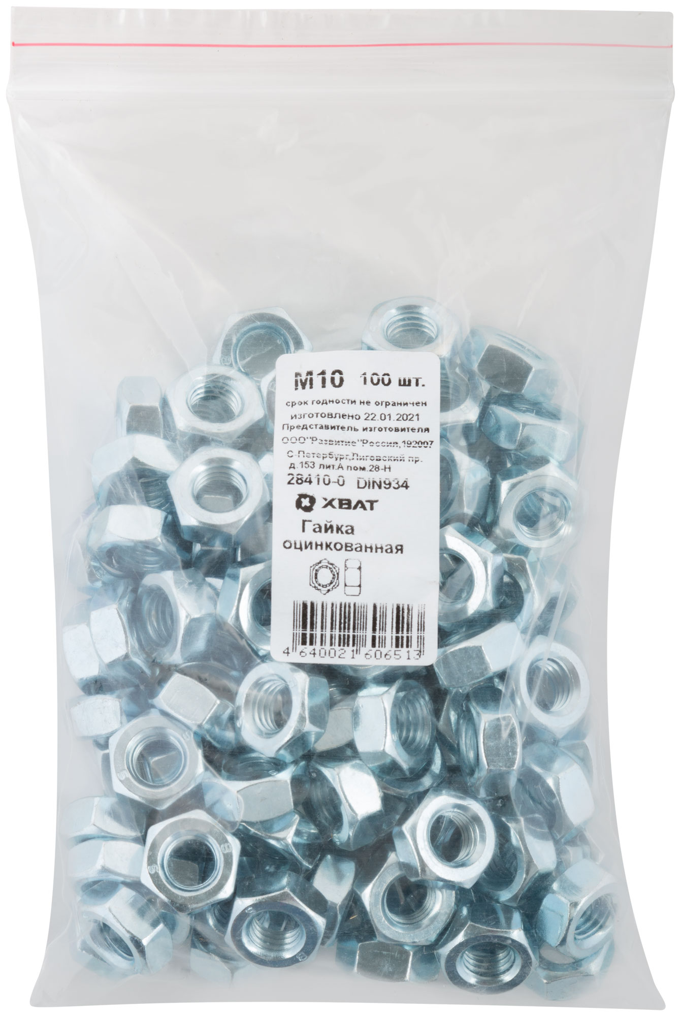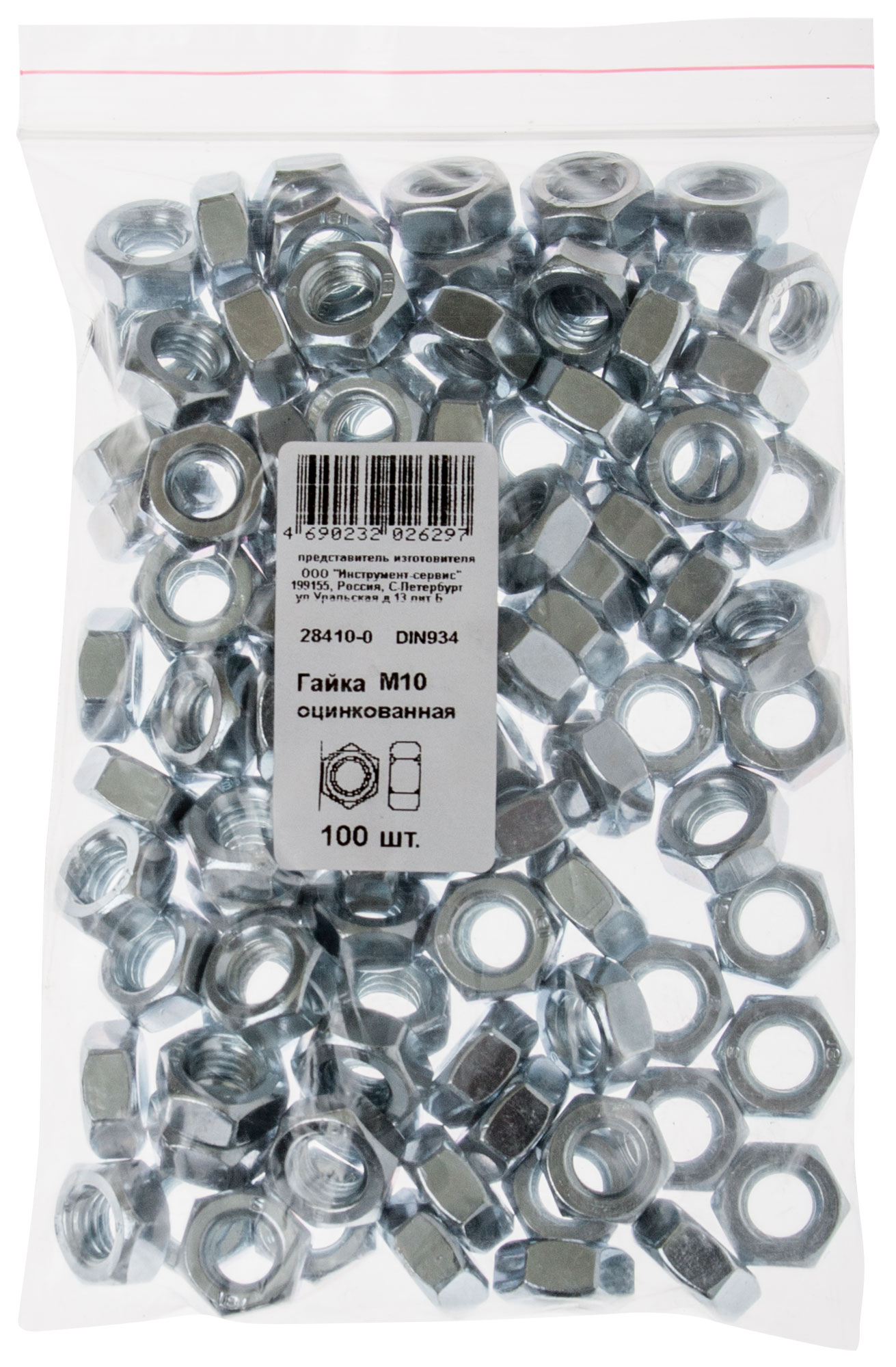 Гайка оцинкованная DIN 934 М10 100 шт. Фасовка