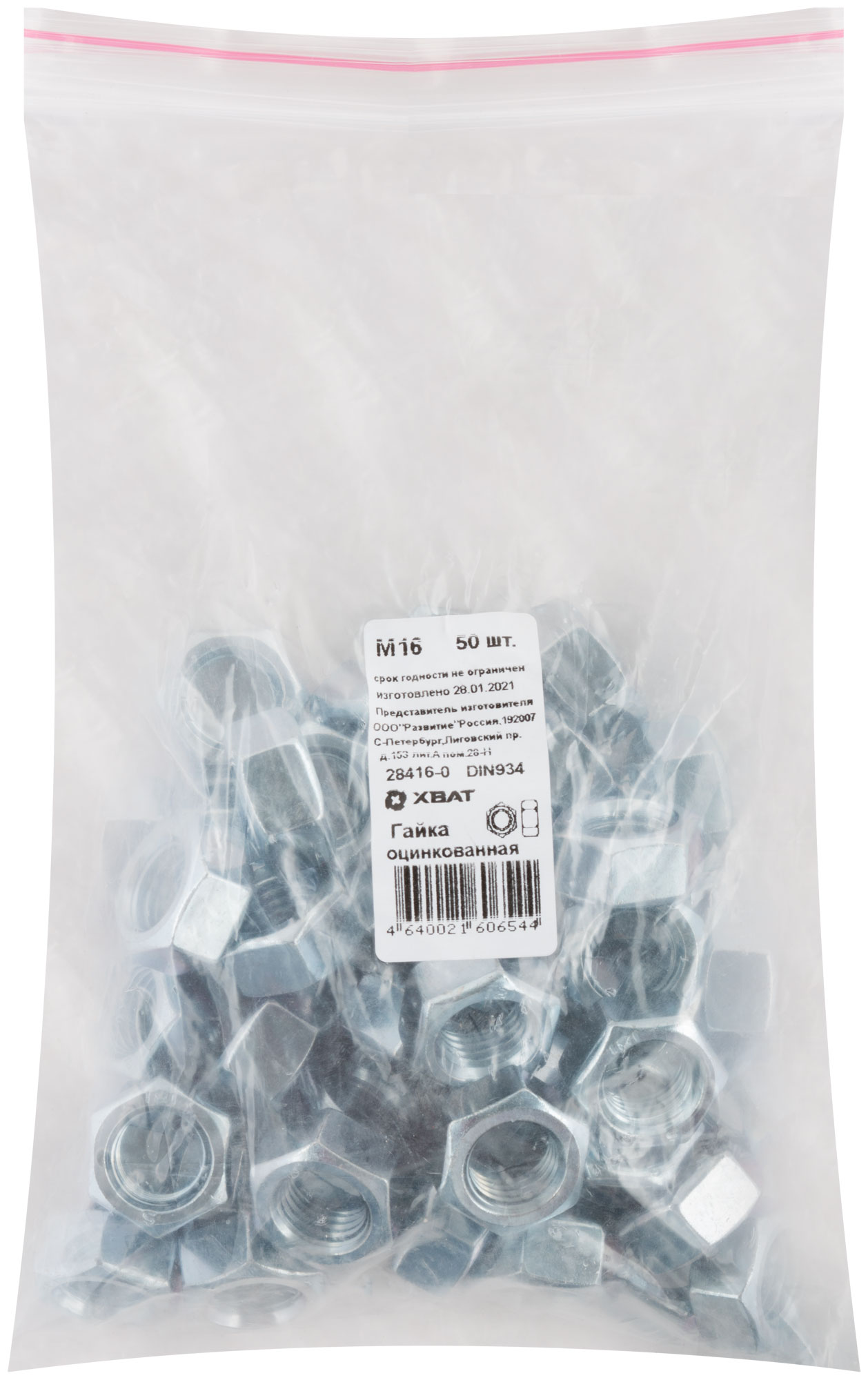 Гайка оцинкованная DIN 934 М16 50 шт. Фасовка