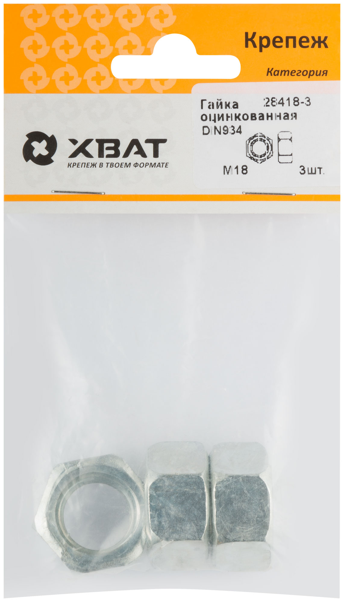 Гайка оцинкованная DIN 934 М18 (фасовка 3 шт.)