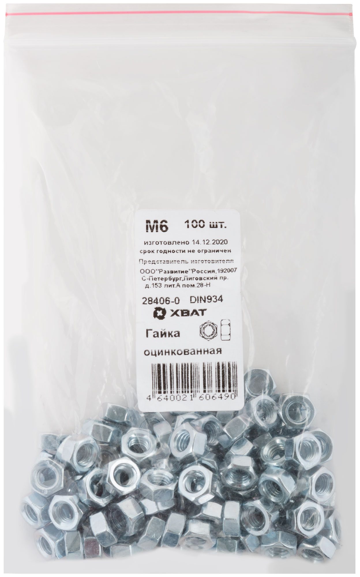 Гайка оцинкованная DIN 934 М6 100 шт. Фасовка