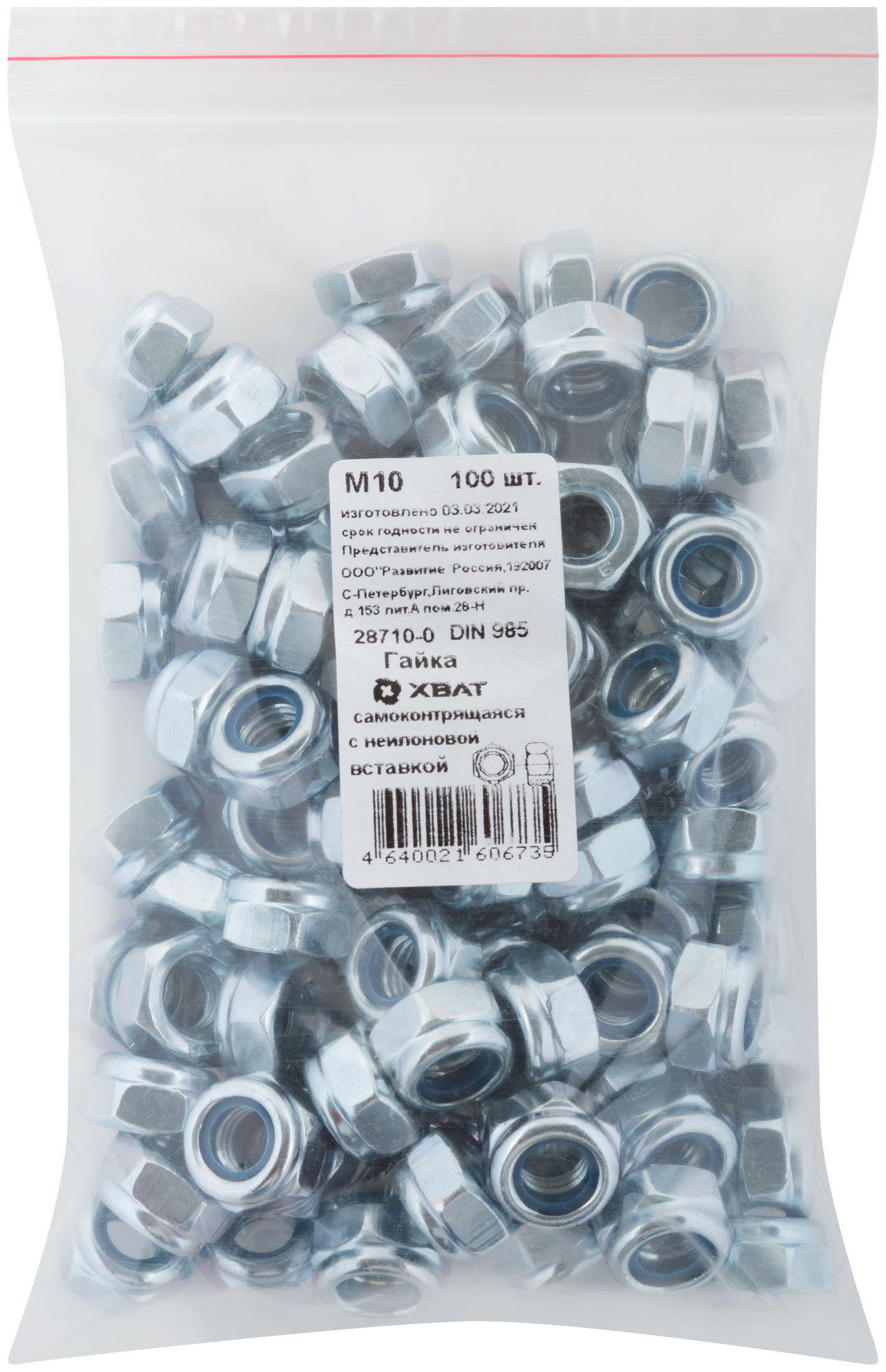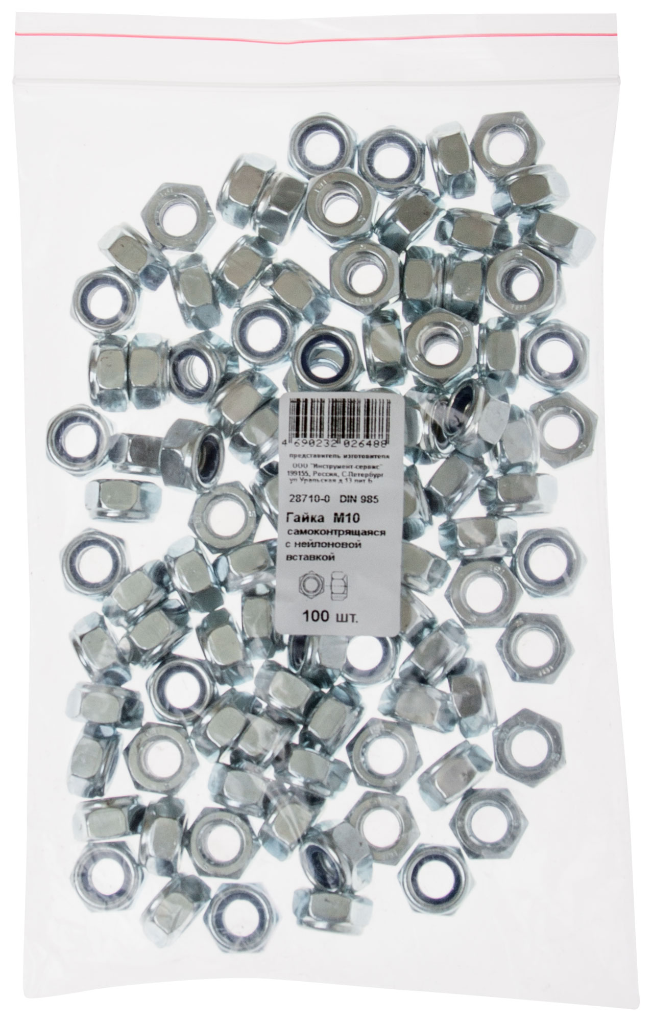 Гайка самоконтрящаяся с нейлоновой вставкой DIN 985 М10 100 шт. Фасовка