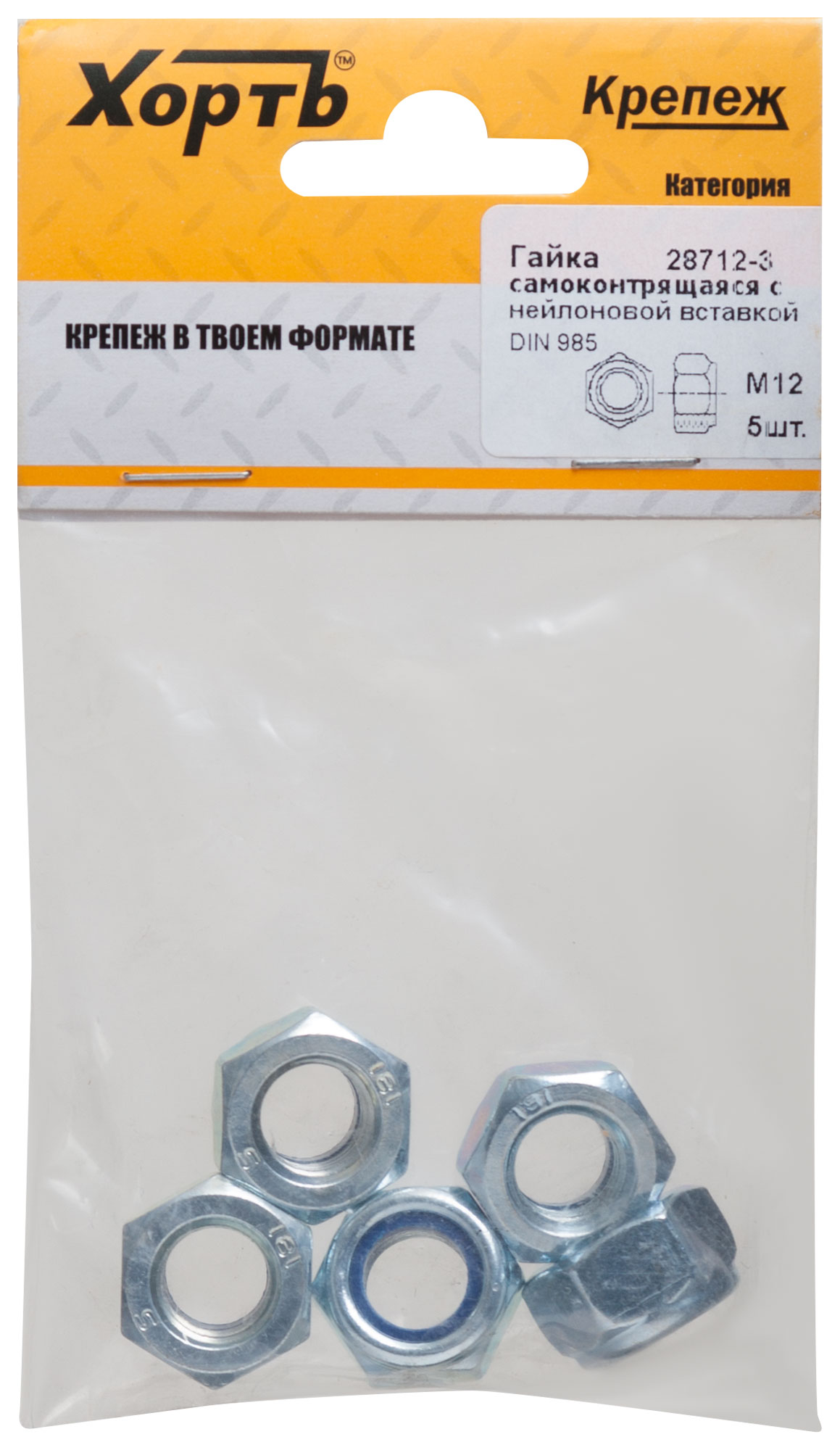 Гайка самоконтрящаяся с нейлоновой вставкой DIN 985 М12 (фасовка 5 шт.)