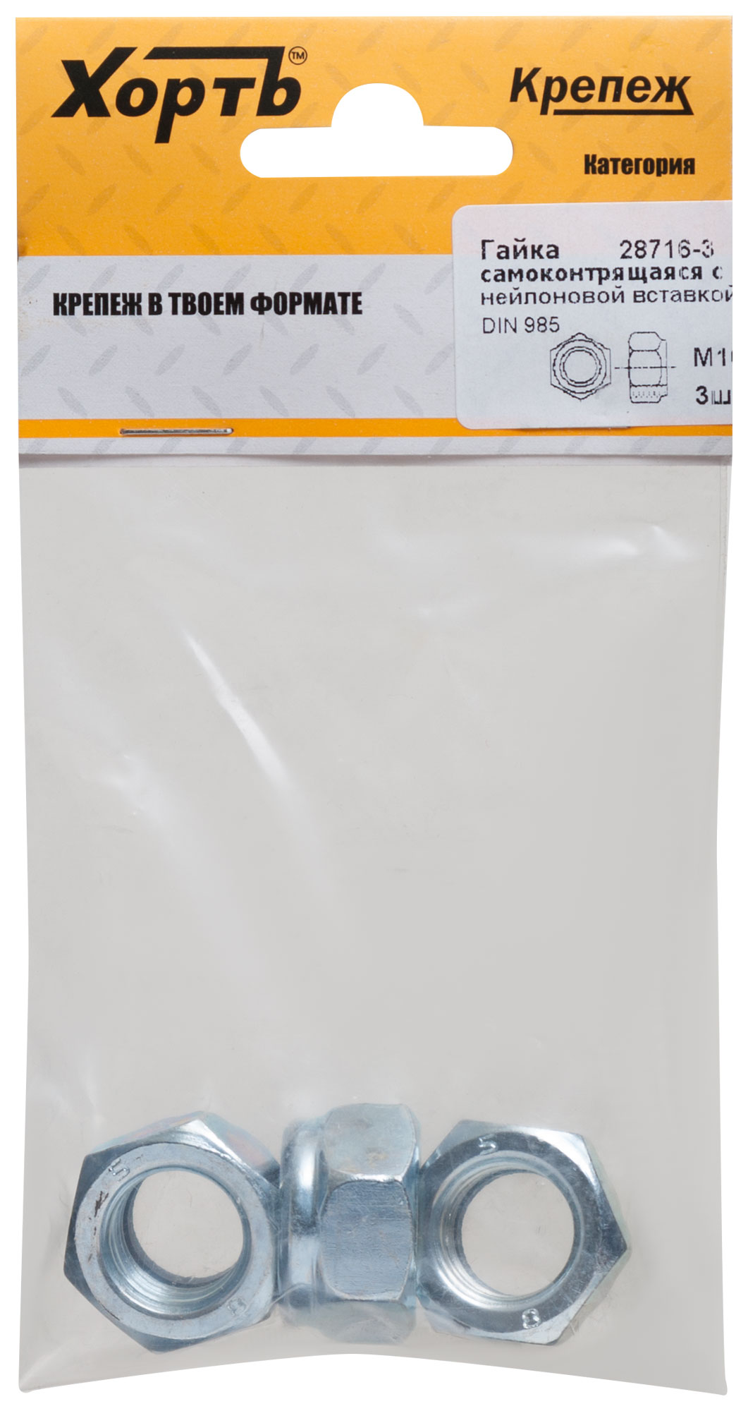 Гайка самоконтрящаяся с нейлоновой вставкой DIN 985 М16 (фасовка 3 шт.)