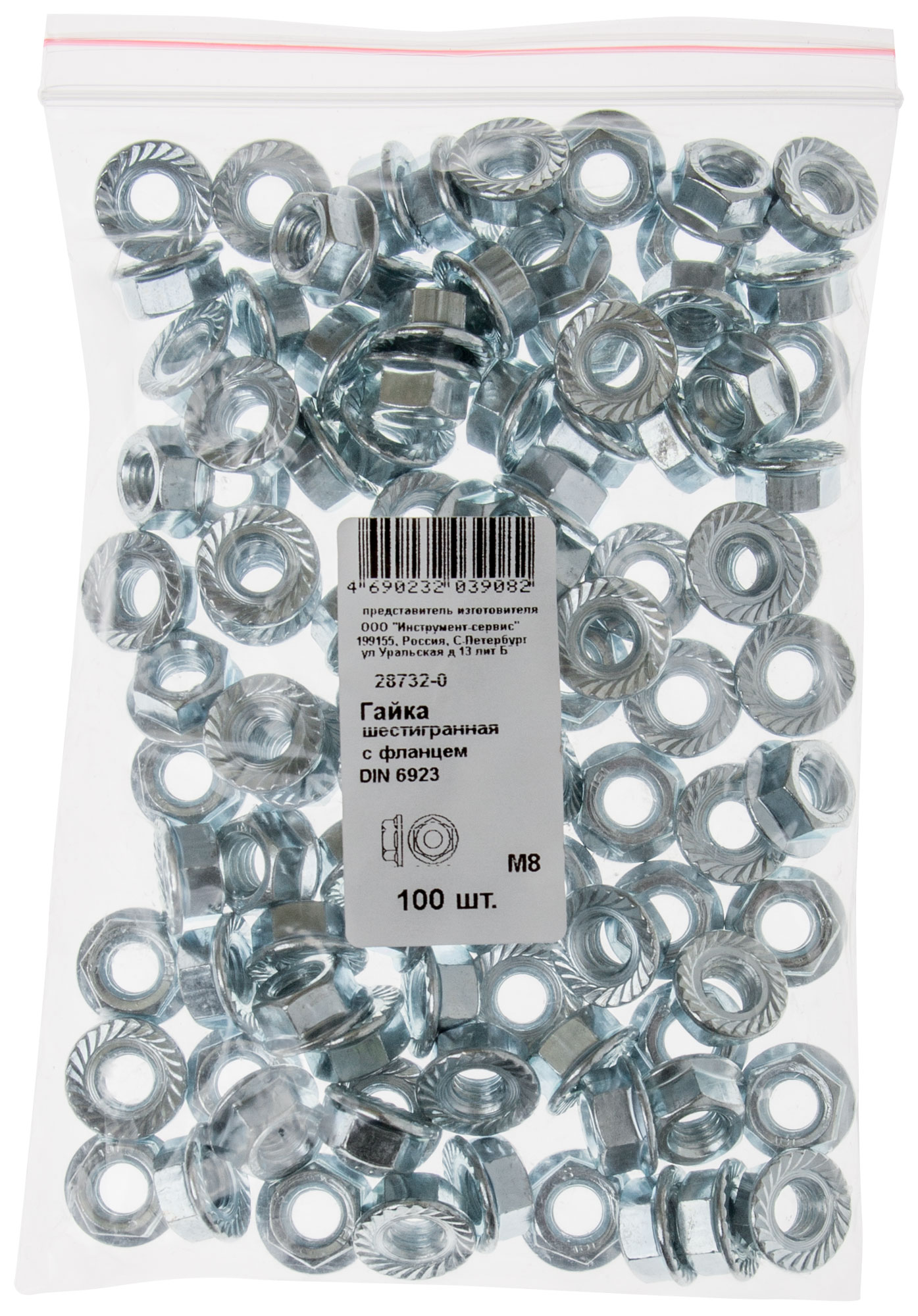 Гайка шестигранная с фланцем DIN 6923 М8 100 шт. Фасовка