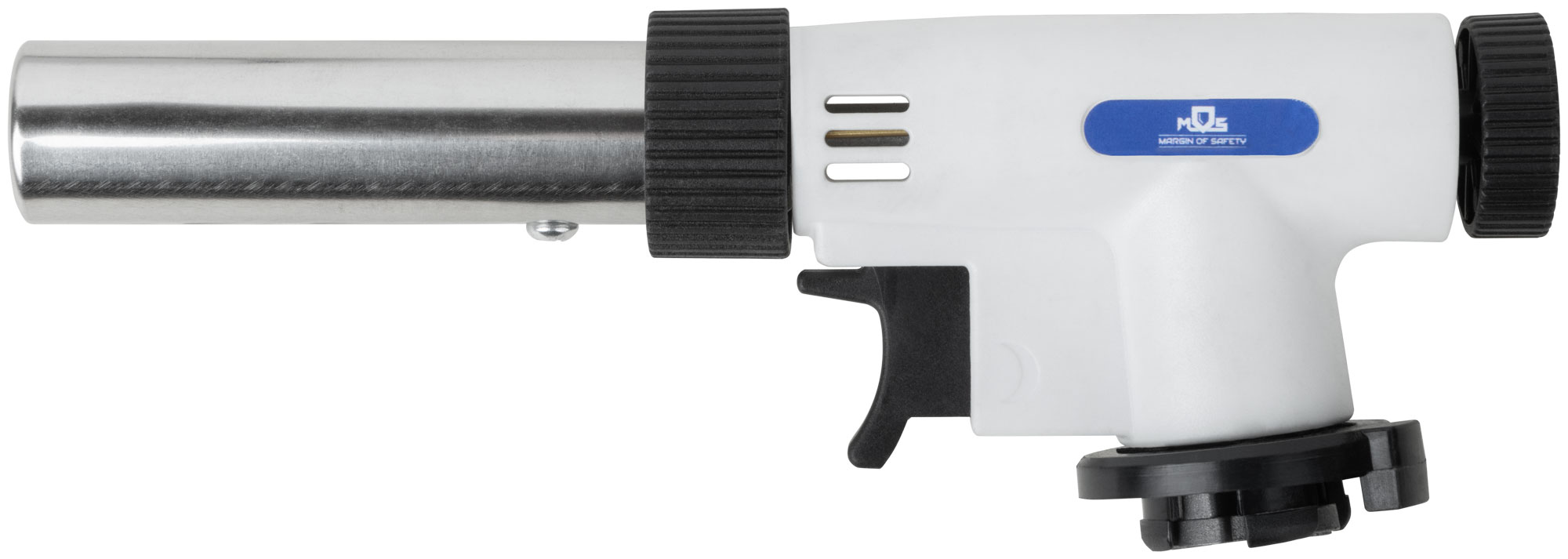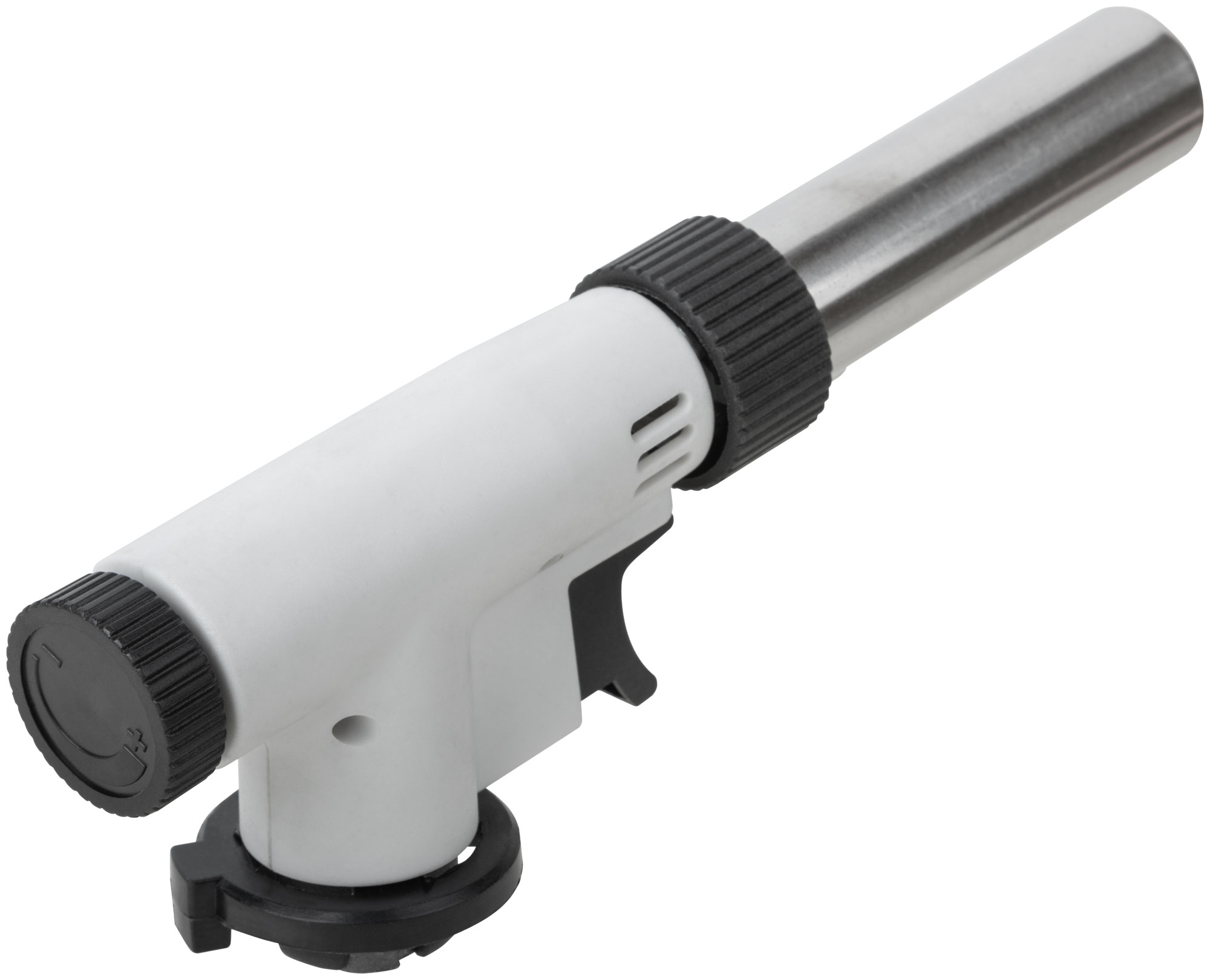 Горелка газовая на цанговый баллон, пласт.корпус, с пьезоподжигом, вращение 360°, регулир.формы пламени, сопло 22 мм