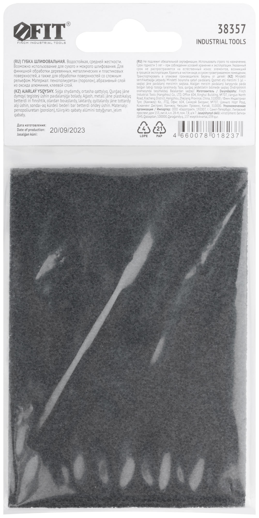 100 х 70 х 25 мм. Водостойкая. Средняя жесткость. Для доводочных работ. Для обработки металла, дерева, фанеры, гипсокартона, ДСП. Материал: алюминий- оксидный абразивный слой. Упаковка: п/э пакет с картонным подвесом.