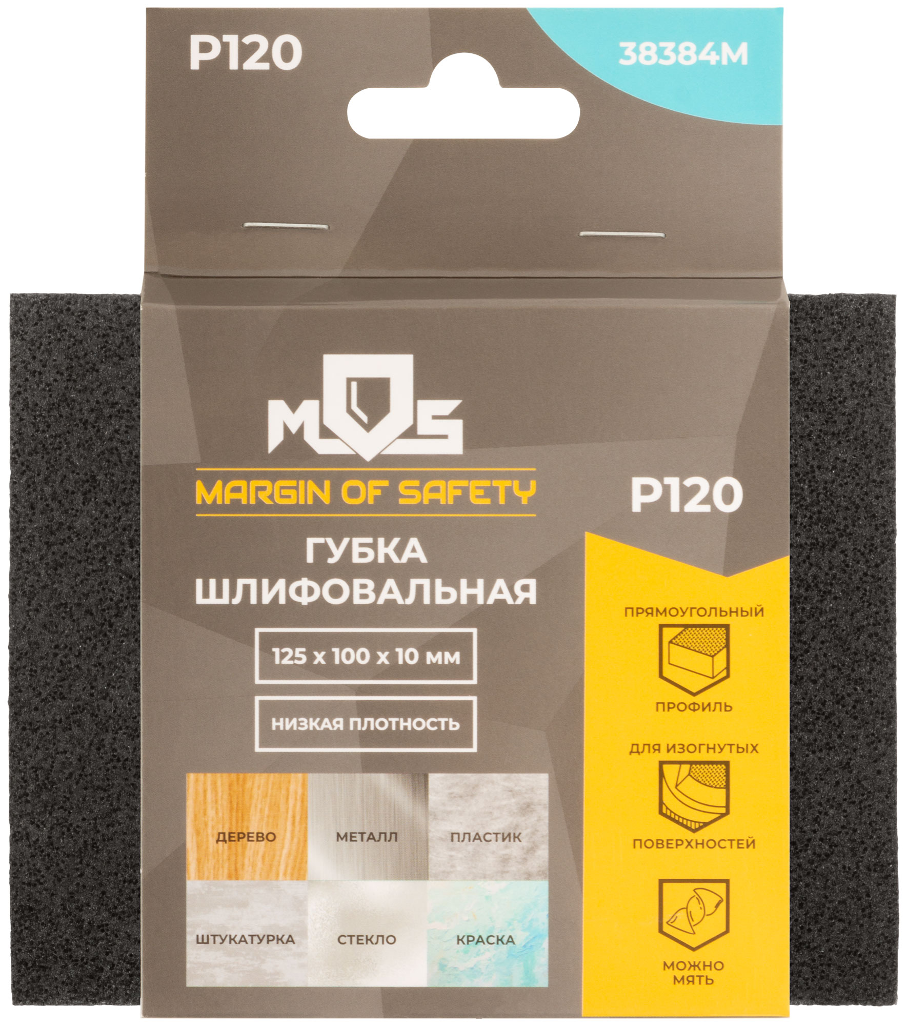 125х100х10 мм. Водостойкая. Мягкая. Для сухого и мокрого шлифования поверхностей со сложным рельефом и работы в труднодоступных местах.По дереву, металлу, пластику, штукатурке, камню, стеклу. Большая рабочая поверхность способствует плотному прилеганию и позволяет шлифоватькруглые и кривые предметы. Материал: алюминий-оксидный абразивный слой, поролоновая основа. Упаковка: картонный подвес.